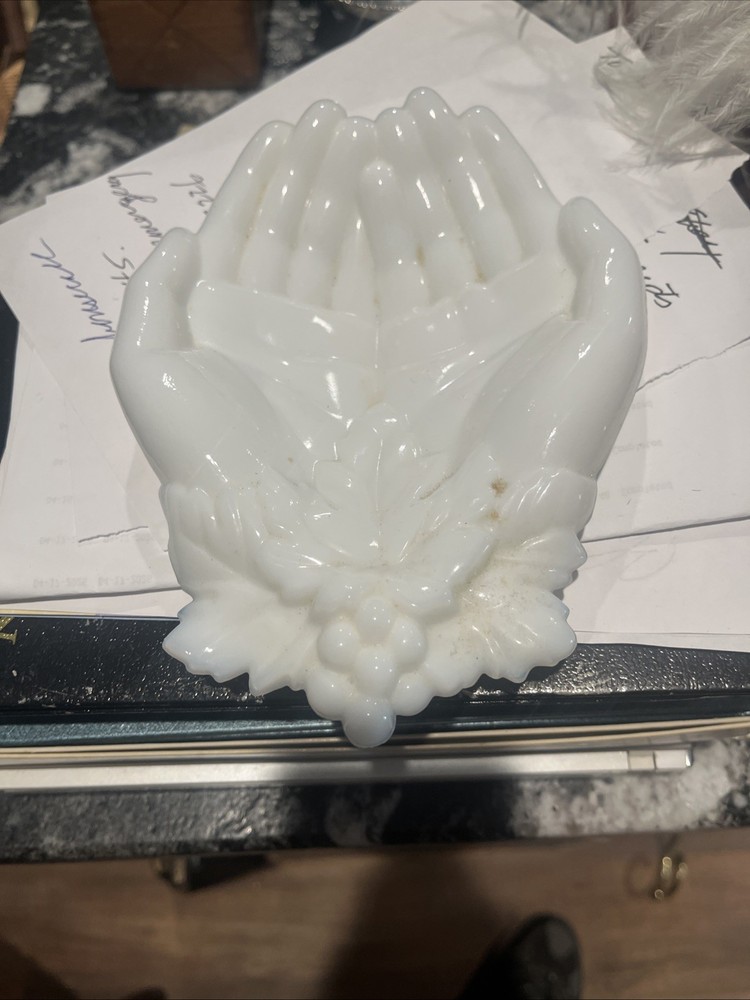 Absolutely love this vintage Westmoreland milk glass tray! The delicate cupped hands design is stunning, and it arrived in perfect condition—no chips or cracks. It’s a beautiful, unique piece that adds a touch of retro charm to my home. Perfect for displaying jewelry or small decor items. Highly recommend!