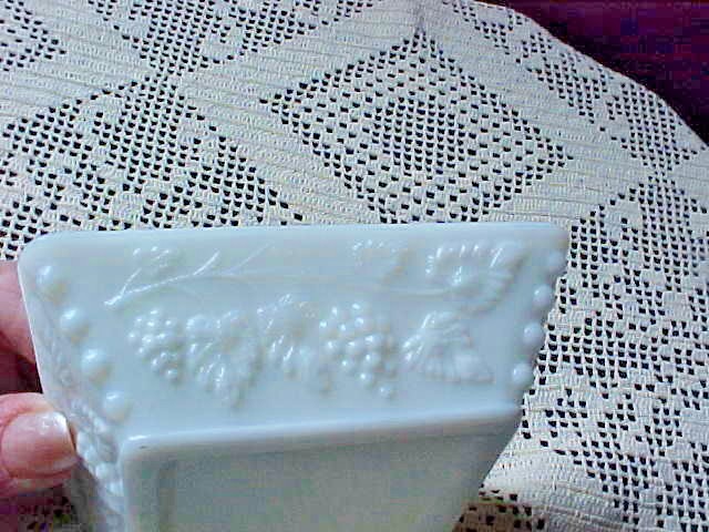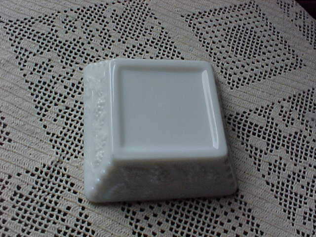 Milk Glass Ashtray Grape Motif WG on Bottom Westmoreland 4" Square - 4 cigarette slots - 1-1/4" tall Has a few Flea Bites not more than 1/8" in size