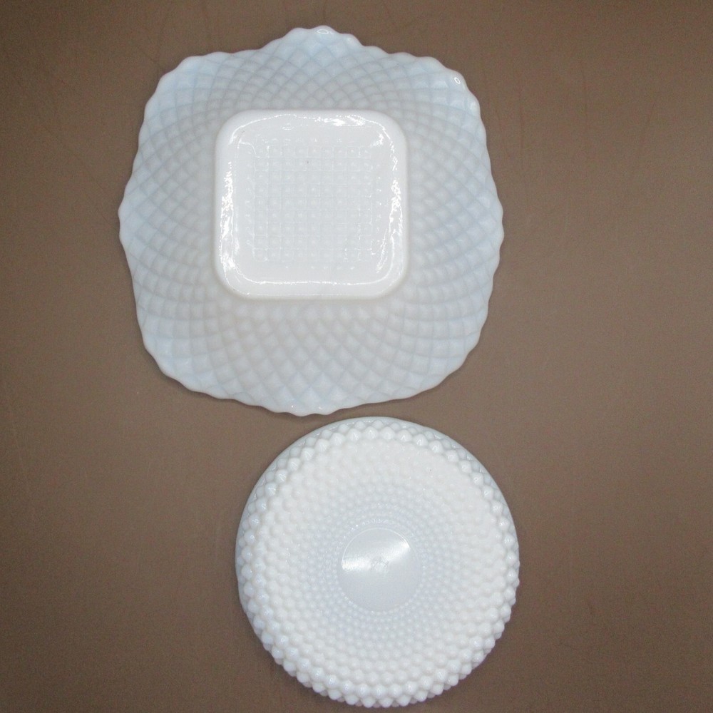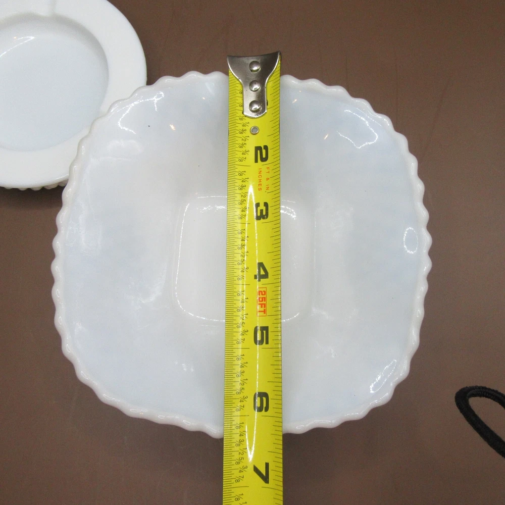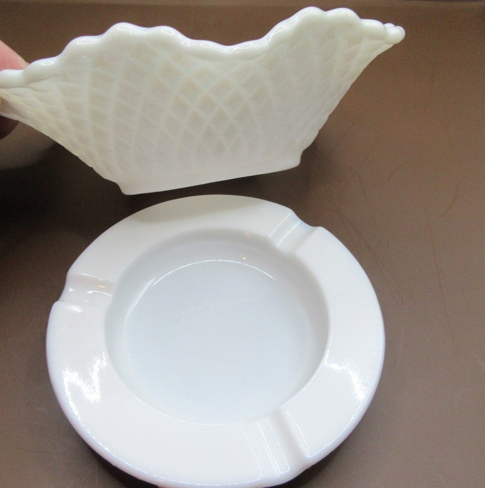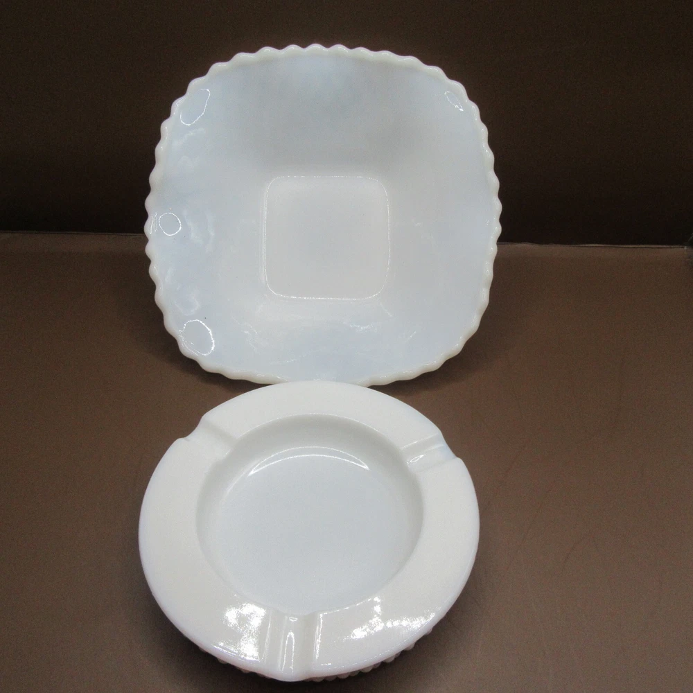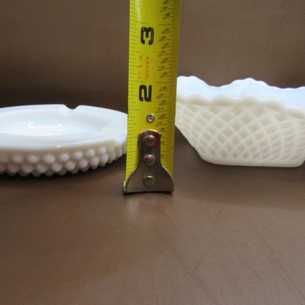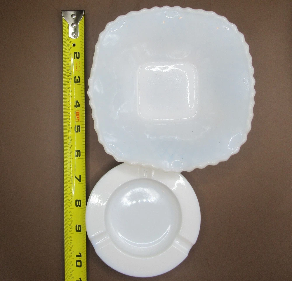 Two beautiful pieces of vintage milk glass. Included are: • Vintage Westmoreland Milk Glass American Hobnail Pattern 4.5"d Round Ashtray. • Vintage White Milk Glass Scalloped Diamond Basket Pattern Candy Dish Bowl. Both and in good condition. The candy dish does appear to have flaw or inner crack that is only visible from bottom. Please see photos for more details and to assess the condition yourself. Also be sure and check out the other items I have for sale. Thank You. For local pick up, this item is in North Huntington Beach (area code 92649). I can also meet along the 405 Freeway between Huntington Beach and LAX.