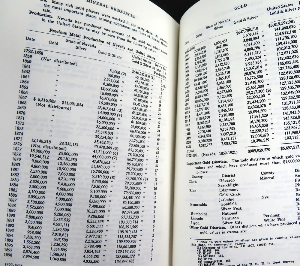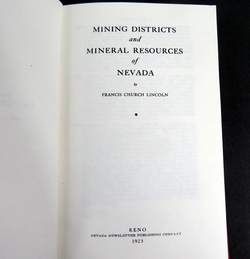 Title: MINING DISTRICTS AND MINERAL RESOURCES OF NEVADA Author: Francis Church Lincoln Illustrations: charts Published: Facsimile reprint of a 1923 Edition Hardcover book. Bonded leather, gold flake marbled endpapers, ribbon marker. Condition notes: Pen mars on front and back covers, very light, see pictures. About: Mining districts. Mineral Resources of Nevada Dimensions: 9 x 6 inches Pages: 295 (plus several pages of advertisements) Shipping weight: 3 lbs SKU: 6733 Powered by SixBit's eCommerce Solution