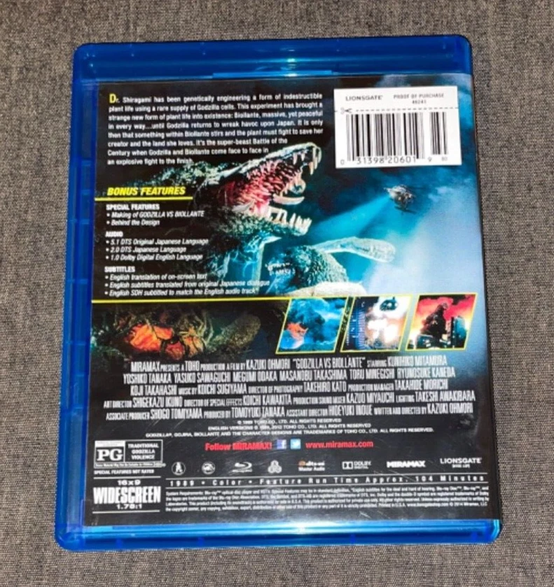 Item: Godzilla vs Biollante Label: Sony (ed1, out of print region A blu-ray ) UPC: 031398206019 Director: Kazuki Ohmori Country of release: USA (2014) Condition: Near mint Postage (tracking number): E verywhere: $15.00 Combined shipping possible: Next 6 Blu-ray discs in package ship for free. Overpaid postage will be refunded. European sales include 21% Dutch VAT.