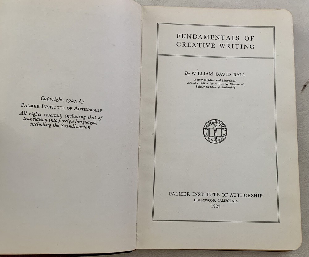 Fundamentals of Creative Writing by William David Ball. Modern Authorship: A Series of Texts Prepared as Part of the Palmer Course and Service in Creative Writing. 233pp faux-leather bound.