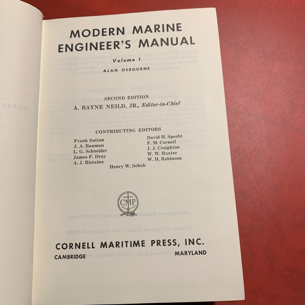 The "Modern Marine Engineer's Manual Hardcover Vol. 1" by Alan Osbourne is a vintage book published in 1965 by Schiffer Publishing, Limited. This comprehensive manual covers topics in marine engineering, including chemistry, mechanics, and thermodynamics. With features such as large print, leather binding, and illustrations, this book is a valuable resource for young adults and adults interested in technology and engineering. Written in English, this 1186-page manual is a must-have for anyone looking to delve into the world of marine and naval engineering. Please view and inspect photos for greater detail. Thank You Lynk