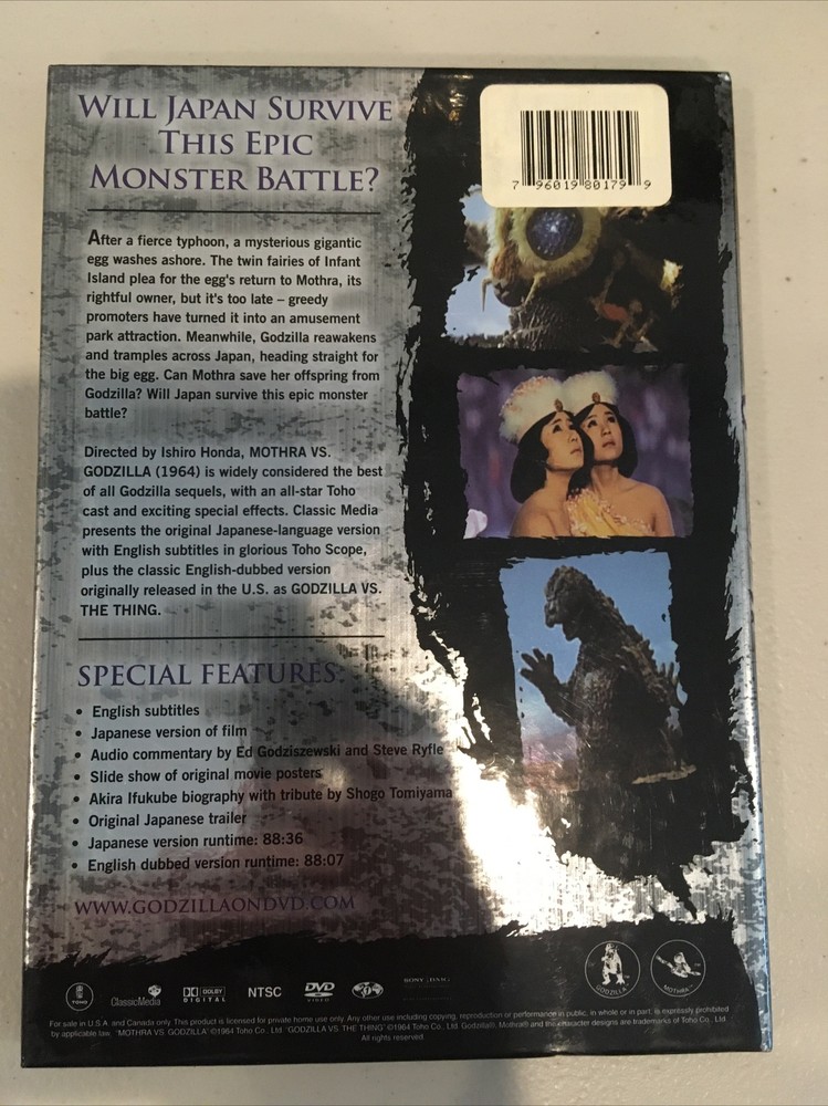 Mothra Vs. Godzilla (DVD, 2007). Case is crisp. Dvd has light scratches. Tested and works. Shipped with USPS Media Mail.