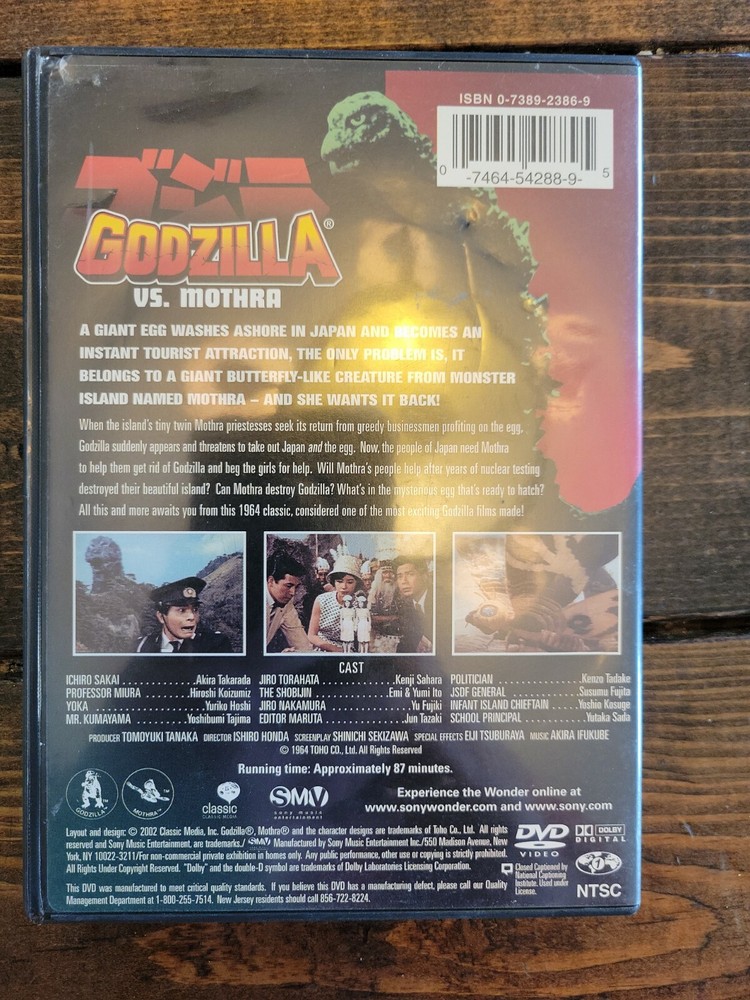 Mothra Vs.Godzilla (DVD, 2002). A220 2/17/24