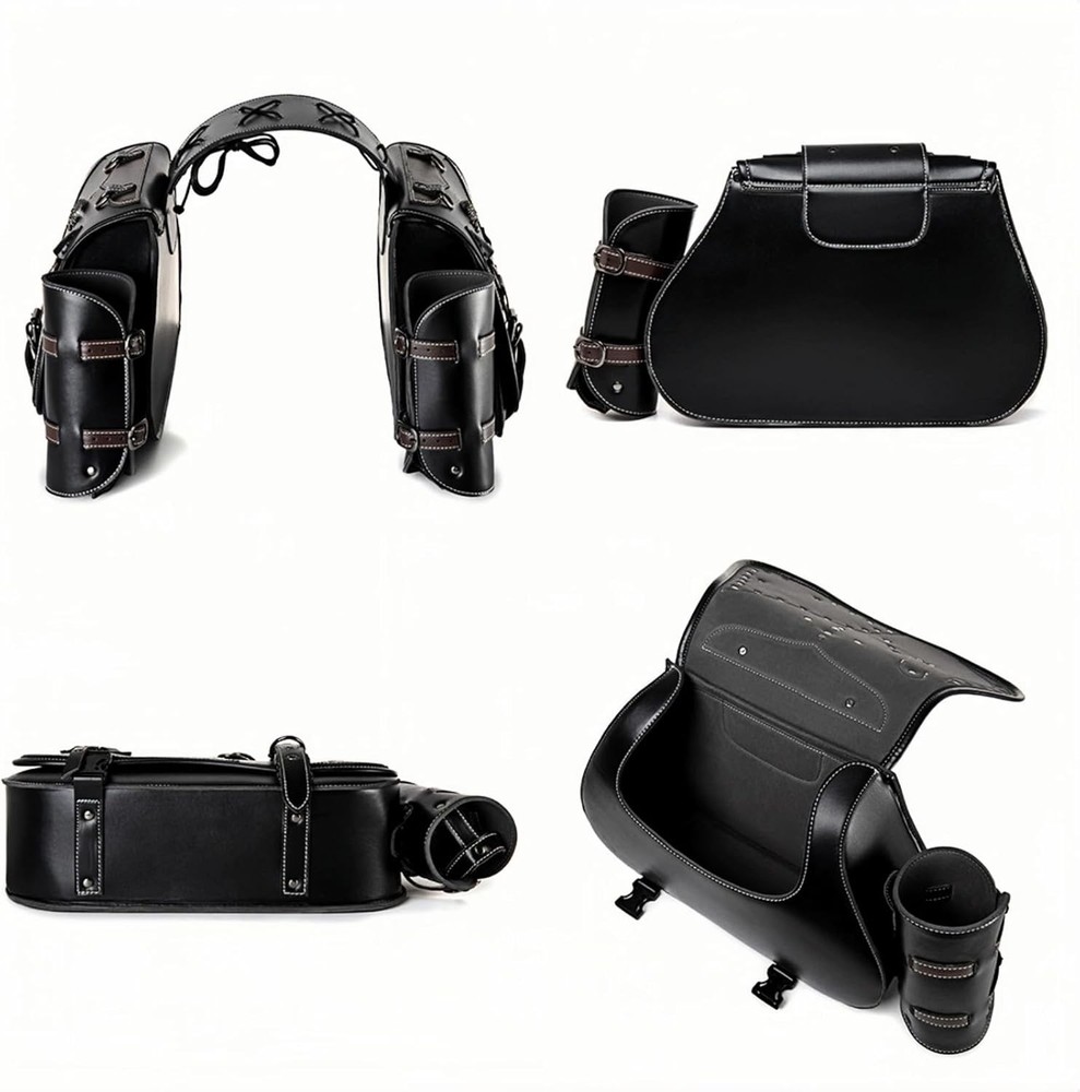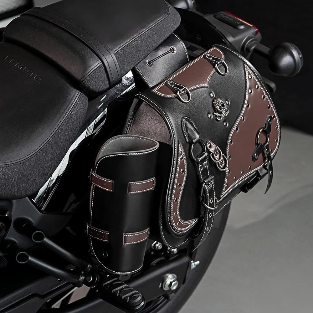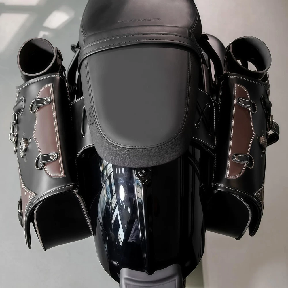 ★【Premium PU Leather & Exquisite l Locks and Trim】-- Made of selected PU leather and high-quality polished hardware are made of exquisite and smooth edges of the bag, with exquisite paint spraying process, and the l parts are polished smooth and bright. Compared with ordinary PVC leather saddle bags, it is not only more delicate and advanced, but also more durable, waterproof and scratch-resistant. The unique rivet streamline design exudes an elegant retro punk flavor, making your ride eye-catching and luxurious. ★【Secure Locking Design, Worry-Free Riding】-- Nubelety motorcycle saddlebags are designed with reinforced hardware locking clasps with ABS plugs to securely lock anything you store, providing stability even at high speeds and ensuring the safety of your belongings. Open the latch for quick release and flip the lid to easily access the contents of the bag, giving you convenience and peace of mind. ★【Universal Design, Easy to Install】--Size: 15.1x10.6x5.1 inches. Nubelety Leather Motorcycle Saddlebags are universal design for motorcycles across the pillion seat, no extra tools needed, just a few minutes to install: 1. Remove motorcycle pillion seat 2. Hang Motorcycle Saddlebags3. Motorcycle saddlebags fit a wide range of motorcycle models including but not limited to Harley Softail, Fat boy, Dyna, Iron, Honda Shadow, Kawasaki Vulcan, Yamaha V-star and more. ★【30 L Large Capacity & 2Cup Holders Practical Design】-- Nubelety motorcycle saddlebags have a total capacity of 30 liters (2 pcs combined), perfect for storing gloves, wallet, smartphone, earphones, keys, cups, drinks, raincoats, mobile power, clothes, tools, or other daily necessities. The quick-release buckle helps you access your supplies quickly, while the large capacity design makes your commute and short trips easy and hassle-free. ★【Dustproof & Waterproof, Easy to Clean】Our motorcycle side storage bag is very humanized in design, the flap design not only protects against dust and water, but also prevents items from falling off during driving, and the smooth outer skin can be refreshed with just a gentle wipe. In terms of details, we have fine stitching, beautiful stitching, neatly wrapped edges, thick material, strong weighing force, even when the bag is empty, it can still maintain a beautiful shape. Automotive Fit Type Universal Fit Capacity 30 Liters Closure Type Buckle Color Brown Country of Origin China Item Weight 3.4 Pounds Item model number Motorcycle Saddle bags Manufacturer Part Number NB-bag-1 Material Leather Model Motorcycle Saddlebags Mounting Type Seat Mount Number of Compartments 2 Pattern punk skull Pocket Description Flap Pocket Product Dimensions 15.1"L x 5.1"W x 10.6"H Shell Type PU Leather Size Size: 15.1*5.1*10.6 inches Special Features Easy to Access, Protective Cover, Flap Design, 30L Large Capacity, Keep in Shape, EVA Foam, Premium PU Leather Strap Type Adjustable, Quick-Release Style Brown-1 Vehicle Service Type Compatible With Harley Davidson Softail, Dyna, Iron, Fat boy, Yamaha V-star, Honda Shadow, Kawasaki Vulcan. 6394498