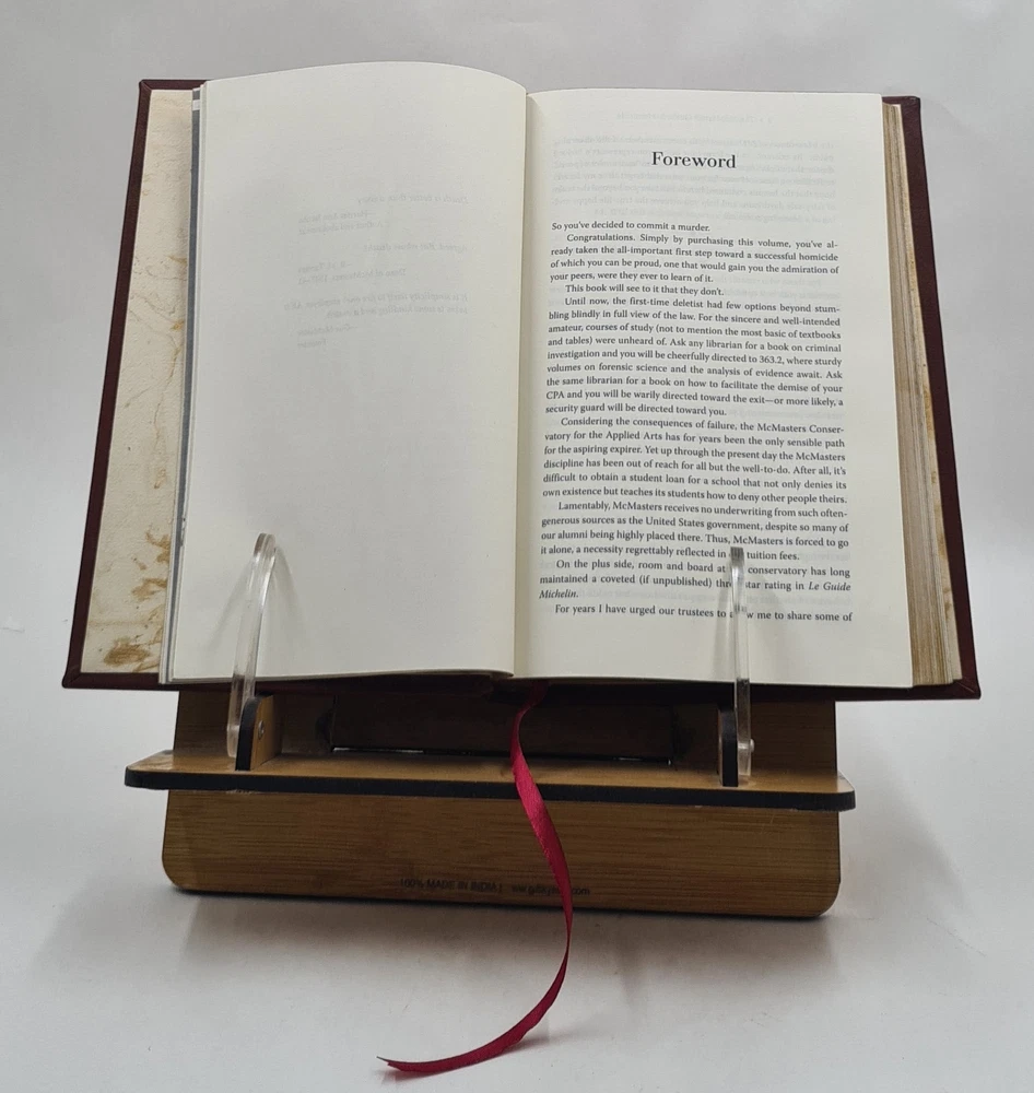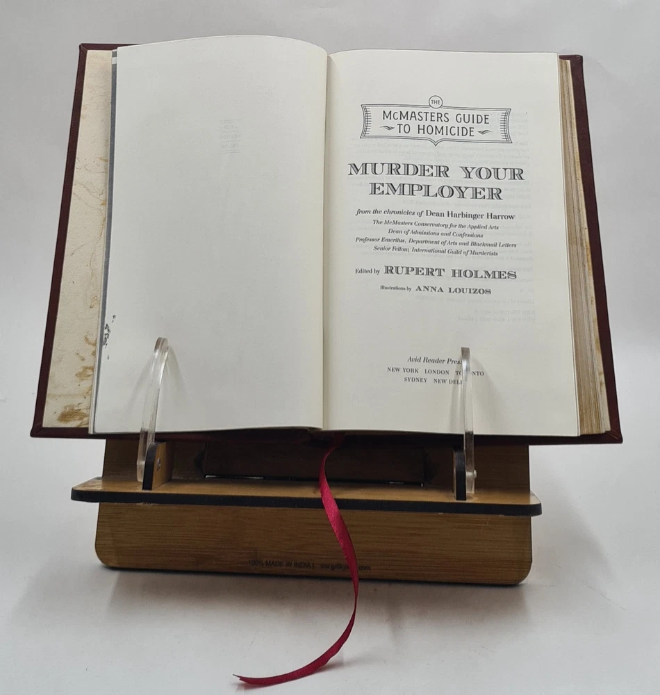 GYAN BOOKS INTRODUCING A REMARKABLE LEATHER-BOUND EDITION, METICULOUSLY CRAFTED BY THE ESTEEMED INSTITUTION " RARE BIBLIO". This title holds the distinction of being a Bestseller, highly praised by readers across the GLOBE. We are thrilled to present this literary gem exclusively to our elite readers, meticulously encased in our one-of-a-kind Premium Leather Binding . Following your order, we purchase the book from the original publisher/distributor and embark on the process of rebinding to elevate this book to a Luxurious Reading Style. A UNIQUE LEATHER-BOUND BOOK FOR ELITE READERS/COLLECTORS OF OLD RARE AND BESTSELLING BOOKS. For the Binding, we use GENUINE LEATHER , graced with opulent GOLDEN LEAF DETAILING on the SPINE , FRONT COVER , AND BACK COVER , ADDED BY EDGE GILDING . ABOUT US ★ We deal into reprinting of the master pieces crafted by authors around the world. ★ We are proud to say that we have a collection of over 25 million books and our collection includes books that are as old as 200 years and hence are considered as RARE BOOKS. ★ We are pioneer in this field having experience of 40 years. ★ We also undertake printing and Leather Binding jobs of other books. ★ Thesis printing and Leather Binding is one of our important Service ★ Many publishers and author approach us for their books to bind in our Unique leather binding format for their special customers. ★ Our craftsmen are active in this job since generations. ★ Restoration of old books is our expertise ★ We are known by our Customization options. ★ We have many leather color options in our bucket. ★ The whole process is done manually so that it gives you the same feeling of old book. OFFERS & SPECIALIZATION: ★ SPECIAL DISCOUNT FOR BULK ORDERS, PLEASE CONTACT US. ★ CHOOSE ANY LEATHER COLOR OF YOUR CHOICE WITHOUT ANY EXTRA CHARGES, JUST CLICK ON IMAGES FOR OPTIONAL COLORS AND INFORM US YOUR CHOICE THROUGH MAIL WITH COLOR CODE. ★ WE OFFER A DIVERSE RANGE OF LEATHER COLORS, INCLUDING RED , GREEN , BLUE , BLACK, MAGENTA , YELLOW , TAN . WE ALSO OFFER MULTI-COLOR LABELS WITH THESE BEAUTIFUL BOOKS ON SPECIAL REQUEST. ★ AN ORIGINAL LEATHER IS BEING USED FOR BINDING THIS BOOK WITH GOLDEN LEAF PRINTING AND DESIGNING ON SPINE, FRONT AND BACK OF THE BOOK WITH EDGE GILDING . Points to note before booking order: ★ In case of multi volume sets, please note that the above listing is for a single volume only. (To order multiple volumes, please contact us separately). ★ We urge you to appreciate that our Leather-Bound Books are Genuine works of art and are Handcrafted by our Professional Craftsmen. Thus, requiring time and care to reach the pinnacle of excellence. ★ We Prepare the Book after receiving the Order. ★ We usually take 30 business days as handling time to dispatch shipment. ★ We request you to understand that these leather-bound books are work of art and hence require time to go through different process to be the master pieces that they are. ★ We usually take 30 business days as handling time to dispatch shipment. We consider special request for a special occasion. ★ Craftsman based in India, prepared this book and shipped from different stock locations around the Globe. Product Details: - ★ Complete Title: Murder Your Employer: The McMasters Guide to Homicide by Holmes, Rupert [PREMIUM LEATHER BOUND] ★ Author: Holmes, Rupert ★ Language: English ★ No. Of Pages: 400 ★ Year: 2023 ★ We provide ?Extra customization*? on request with additional charges. ★ We also undertake printing and Leather Binding of all the books. ★ Product Disclaimer: Please be aware that because leather is a natural material, slight discoloration or change in texture may be visible. About the Book: - NEW YORK TIMES BESTSELLER From the diabolical imagination of Edgar Award-winning novelist, playwright, and story-songwriter Rupert Holmes comes a devilish thriller with a killer concept: The McMasters Conservatory for the Applied Arts, a luxurious, clandestine college dedicated to the fine art of murder where earnest students study how best to "delete" their most deserving victim. Who hasn't wondered for a split second what the world would be like if a person who is the object of your affliction ceased to exist? But then you've probably never heard of The McMasters Conservatory, dedicated to the consummate execution of the homicidal arts. To gain admission, a student must have an ethical reason for erasing someone who deeply deserves a fate no worse (nor better) than death. The campus of this "Poison Ivy League" college--its location unknown to even those who study there--is where you might find yourself the practice target of a classmate...and where one's mandatory graduation thesis is getting away with the perfect murder of someone whose death will make the world a much better place to live. Prepare for an education you'll never forget. A delightful mix of witty wordplay, breathtaking twists and genuine intrigue, Murder Your Employer will gain you admission into a wholly original world, cocooned within the most entertaining book about well-intentioned would-be murderers you'll ever read. Rupert Holmes's much celebrated career ranges from chart-topping story songs with surprising twists--"Escape (The Pina Colada Song)"--to Tony Award-winning whodunit musicals--The Mystery of Edwin Drood--Edgar Award-winning comedy-thrillers--Accomplice--and the Nero Wolfe Best American Mystery Novel nominated Where the Truth Lies, made into an Atom Egoyan motion picture starring Colin Firth and Kevin Bacon. Called "an American treasure" (Los Angeles Times), "a true Renaissance man" by Newsweek, "a comic genius" (Kirkus Reviews) and simply "a genius" (The Times, London), Rupert Holmes brings his wickedly clever storytelling talents to this outrageous and darkly comic mystery set in a secret, idyllic campus where students learn how to "do in others as you would have others do you in."