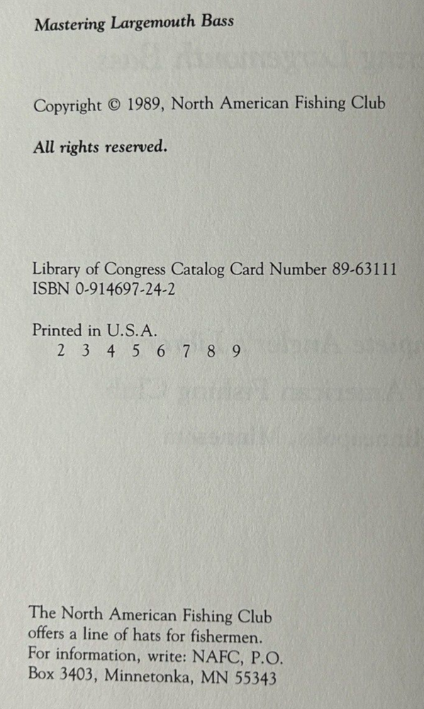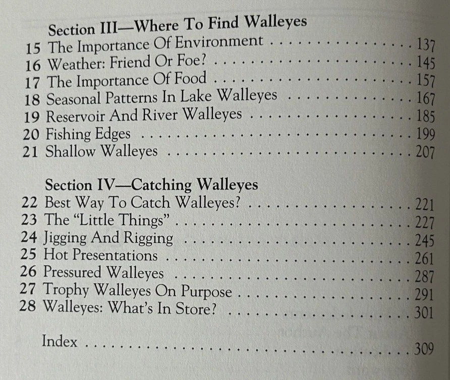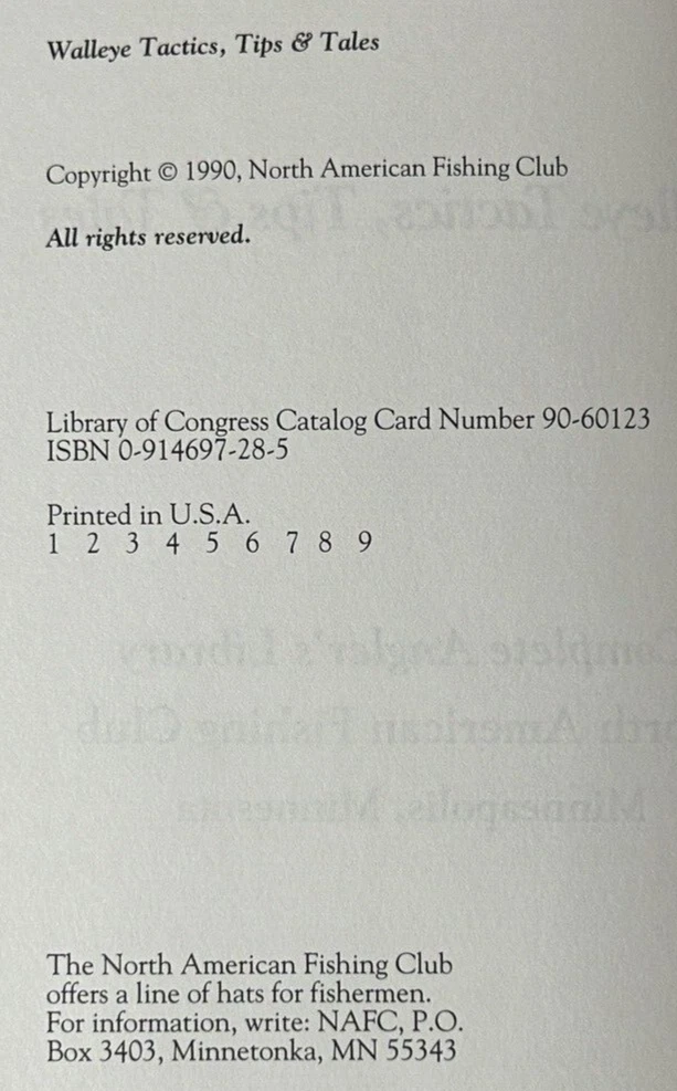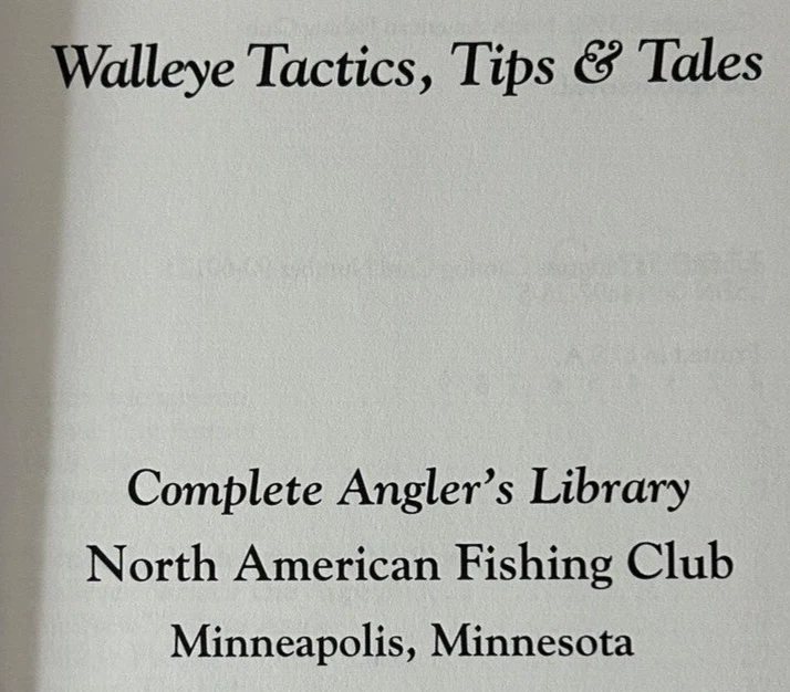 North American Fishing Club: Mastering Largemouth Bass by Larry Larsen In his decades of bass fishing, Larry Larsen covered the bass' global range, from Minnesota to Honduras, from the Hawaiian Islands to Cuba. His personal best largemouth weighed more than 12 pounds, and he established an official line class world record in 1982 for Suwannee bass. A frequent contributor to national and regional outdoor publications, he has written about bass fishing for more than 20 years. His writings detail highly productive fish-catching methods and special techniques. He gives his readers the most productive tactics to find and catch bass. This book will give you a better understanding of America's number one gamefish -- and it will make you a better bass fisherman. Illus. North American Fishing Club: Walleye Tactics, Tips & Tales by Mark Strand Part of the COMPLETE ANGLER'S LIBRARY, by the North American Fishing Club. This book covers: understanding walleyes, getting the right equipment for walleye fishing, where to find walleyes, and catching those walleyes! Then, of course comes the eating, but you're on your own for that!