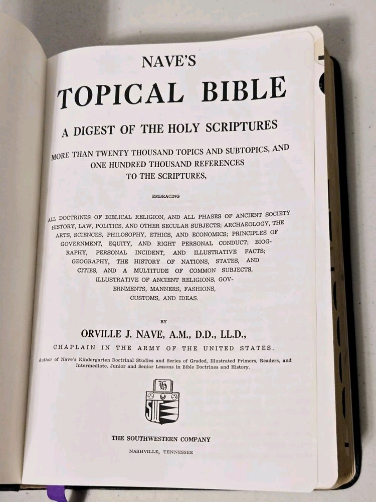 NAVE'S TOPICAL BIBLE: A Digest of the Holy Scriptures Leather 1962 Thumb Indexed - missing 2 indexes.