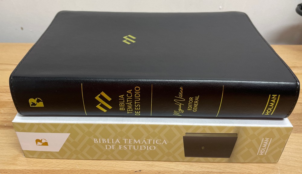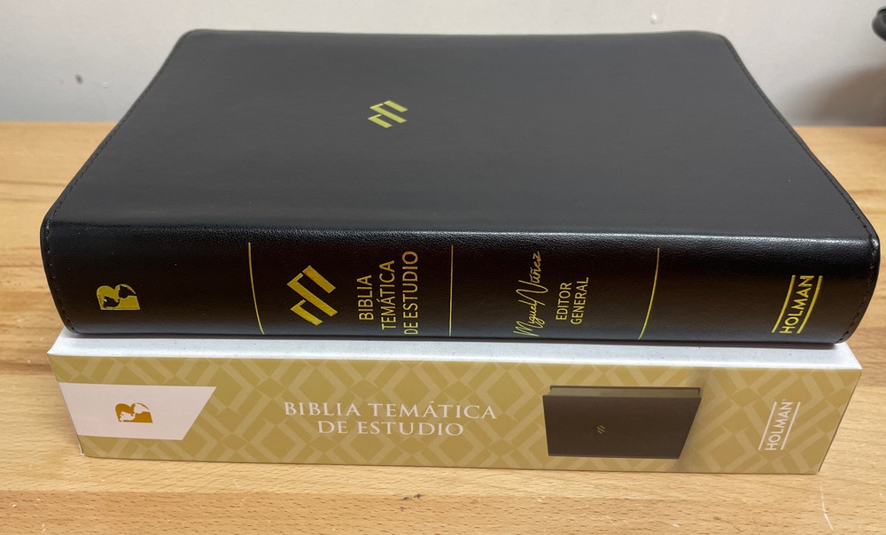 NBLA Biblia Temtica de Estudio, Negro Smil Piel negro letra grande 12 puntos. letra 12 puntos La Biblia temática de estudio, editada por el Dr. Miguel Núñez, es un recurso sin precedentes para el pueblo de habla hispana. Esta Biblia ha sido diseñada para profundizar en el entendimiento completo de la Palabra de Dios. Con más de 50 artículos sobre la Biblia y teología, más de 200 apuntes teológicos e introducciones a cada libro escritos por el Dr. Miguel Núñez, esta es la Biblia de estudio teológica más completa que se ha producido en español. Cuenta con la colaboración de más de 25 pastores y teólogos hispanos. Además de una extensa introducción a la Biblia de la pluma del Dr. Núñez, los artículos, escritos por un destacado equipo de colaboradores, incluyen temas como «La caída y sus efectos», «La ley de Dios», «La adoración», «La Trinidad», «La santificación del creyente», «La doctrina de la justificación» y más. Este recurso ayudará al lector a ver la coherencia de la Biblia y la importancia de ella en la vida de la Iglesia. Características: Dr. Miguel Nuñez, editor general Introducciones a cada libro de la Biblia por Miguel Núñez 10 artículos inéditos de introducción a la Biblia por Miguel Núñez 50 artículos de Biblia y teología escritos por más de 25 pastores y teólogos de diferentes países Latinoamericanos Más de 200 devocionales teológicos Referencias al pie de página Palabras de Cristo en rojo Mapas a colores Concordancia y más
