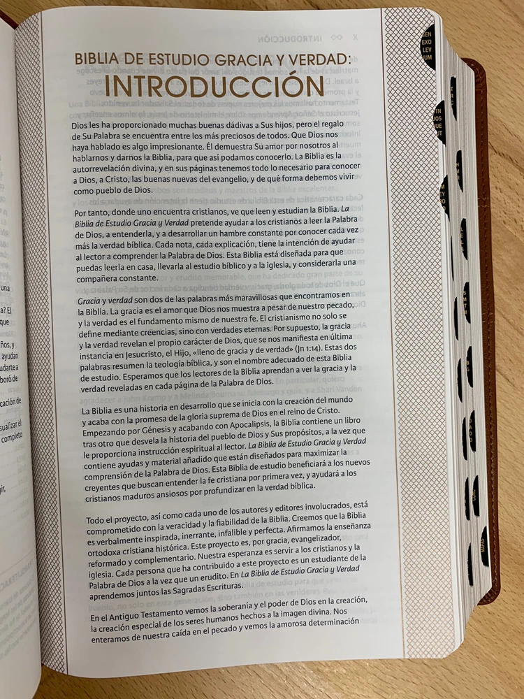 NBLA Biblia de Estudio Gracia y Verdad, Leathesoft, Caf, Interior a Dos Colores,. Esta totalmente nueva Biblia de estudio resalta y expone el tema de la gracia y verdad de Dios a través de la toda la Biblia. Está cuidadosamente desarrollada con profundidad y en un formato portátil, y cada una de las 750 000 mil palabras incluidas en las notas de estudio e introducciones a los libros de la Biblia es significativa. Esta Biblia profunda y abundante en las ayudas de estudio, pero, a la vez, mantiene un tamaño portátil de modo que pueda ser utilizada en todas las áreas de la vida. Con más de 60 colaboradores únicos, dirigidos por el comité editorial integrado por los doctores Albert Mohler, Benjamin Merkle, y James Hamilton, esta Biblia de estudio abrirá un nuevo entendimiento respecto a cómo la gracia y verdad de Dios se relevan a través de la Palabra de Dios El texto íntegro de la Nueva Biblia de las Américas retiene de manera precisa el significado de los idiomas originales, al mismo tiempo que provee claridad y legibilidad únicas. Respetando el mismo vocabulario, la gramática y la estructura de los originales, la Nueva Biblia de las Américas es la traducción moderna más literal disponible en español latinoamericano. Características Texto íntegro de la NBLA Tipografía Comfort Print™ 9 Plan de lectura Glosario Notas a pie de página 16 Mapas a todo color 2 cintas marcadoras Notas contextuales a la traducción Más de 20 mil nuevas notas de estudio a pie de página Introducción a la Biblia por el Dr. Albert Mohlerta Tamano de la biblia 11.110 X 6.110 (inches)