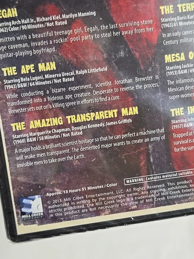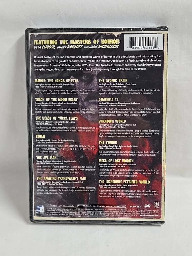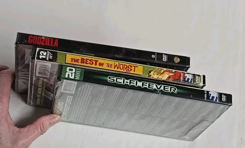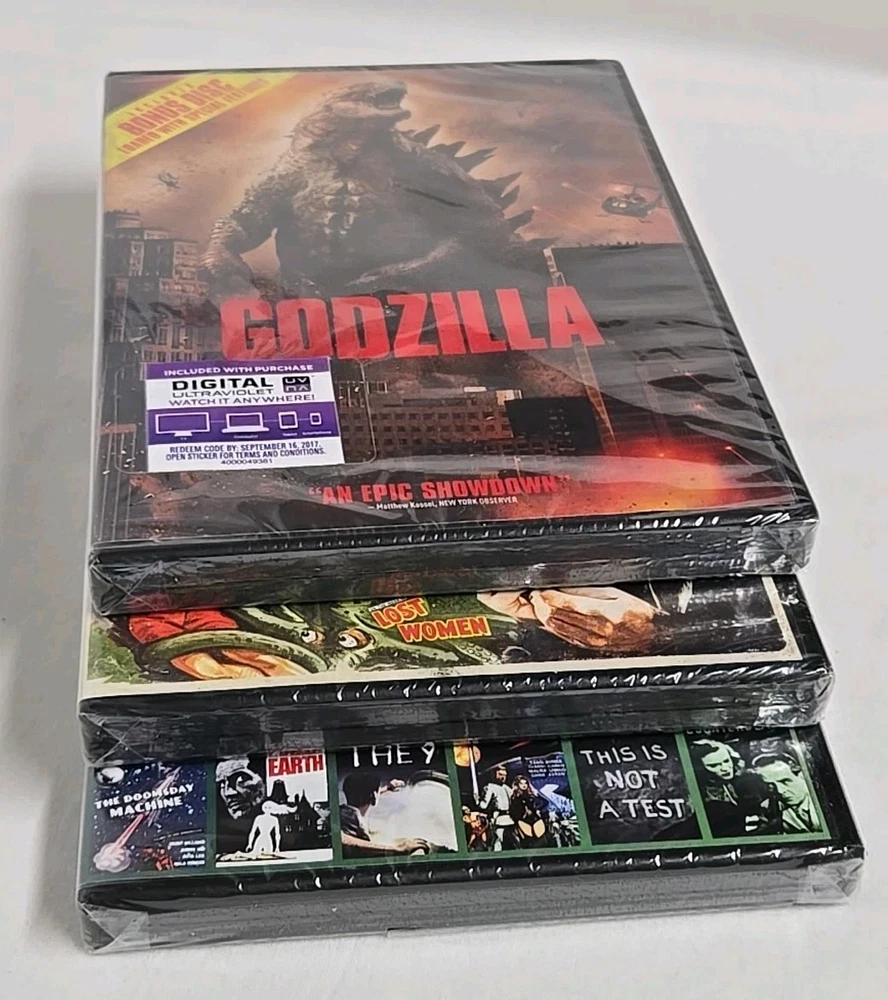 DVD LOT of 3 Different: ● "Godzilla" - PG-13 (2014) ● "The Best of the Worst" - mature audiences only (2013). Approx. 13 hours, 51 minutes/color . 3 disc set (12 films). ● "Sci-Fi Fever 20 Film Collection" - 2001, 1997, 2013 Approx. 28 hours, 40 minutes/color & B&W. 4 disc set (20 movies). Total of 33 movies! Still sealed! UNOPENED! ♻️ Many times we recycle shipping supplies. If you need new materials, please contact us. Thanks for your understanding. 📦 Sent USPS Media Mail in a box to protect your investment. DS-11-1