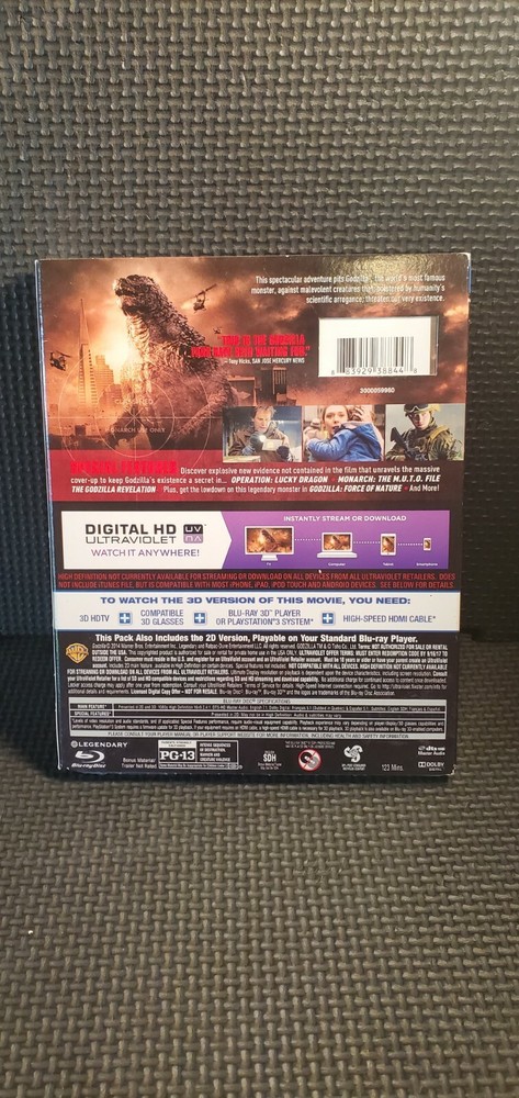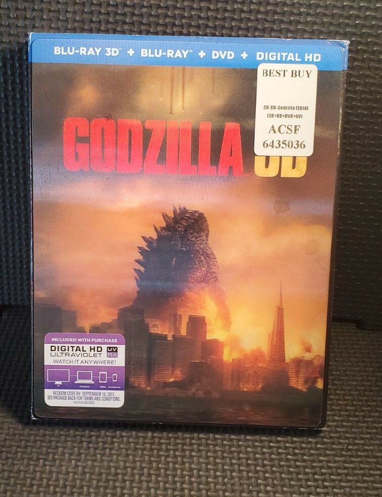 Godzilla (Blu-ray/DVD, 2014, Includes Digital Copy Ultraviolet 3D) with Slip cover. New and Sealed. Minor Shelfwear on the corners of the slip cover. Shipped with USPS Mail....
