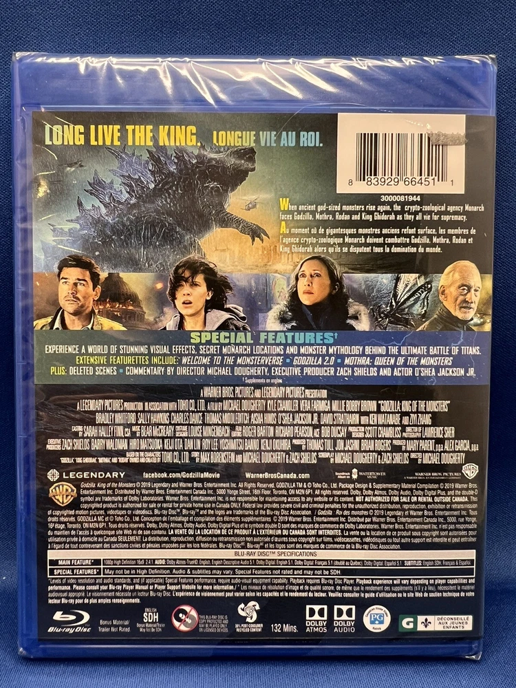 Borden’s Toys in the Attic LLC Toys, Movies, Collectibles & More! Our pop-up shop style store is currently looking for a new physical location, so you will be able to visit us in person soon! In the meantime, find out what is available first by following us on our social media pages: Facebook, Instagram and TikTok (Coming Soon: toy reviews and more on YouTube). Search: bordenstoysintheattic See more available toys, action figures and more at our original eBay page: april3933 (1 Purple Star & a 100% Positive Feedback rating since 2004!) Item Information: NEW Godzilla King Of The Monsters Blu-ray Widescreen with French Slipcover. Packaging is in good condition but the factory sealing plastic wrap is ripped on the back side and the bar code on the slipcover is damaged (see photos). Please review all photos and read all the details about this item before purchasing or bidding. Items are sold as is, so what you see in the photos is exactly what you get (except sometimes, stands and other items noted above might not be included). No Returns once the shipping label for the item has been purchased and printed. We try to be 100% transparent regarding condition and other facts about each item, but many items are not from my own personal collection and might be from other unknown previous owners. Please review all photos prior to purchasing to judge for yourself on their legitimacy and condition. 90% of our mailing packaging is recycled from previous purchases. So, items you order from us may arrive in Amazon or other company boxes. All items are packaged as carefully as possible with bubble wrap (and more if needed) before mailing. Items are shipped out as soon as possible. Items ordered on a Saturday and/or Sunday are not shipped out until the next non-holiday work day. We mostly use USPS Ground Advantage, USPS Priority or Media Mail. We do not have any control over delayed deliveries once we hand over the package(s) to the USPS, so order well in advance of any holidays or events you may want the item delivered in time for because we do not guarantee delivery time. We are also not responsible for any items that may be damaged, stolen or lost during shipping but will work with you to help you either locate your item (if possible) or help get you a refund from eBay or the USPS as soon as possible. Please feel free to message us with any questions or concerns on the above item before purchasing, including any special mailing/shipping instructions to insure you are delivered exactly what you want and purchased. Please take the time to leave us a positive review & follow me on eBay! 😃 Thanks for Shopping! Borden’s Toys in the Attic