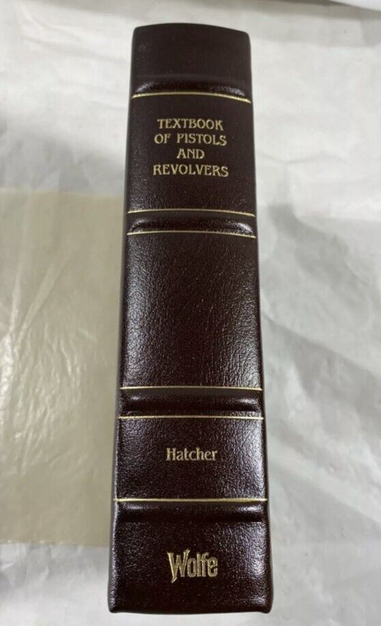 NEW Textbook of Pistols & Revolvers by Hatcher Leather Bound NOS Great item! Message me with questions anytime, see pictures for condition(enlarged version is best quality). Combined shipping a vailable for multiple lot purchases.