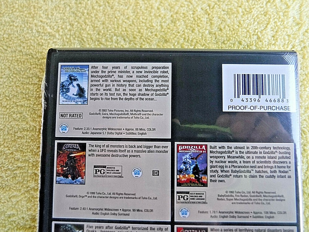 FEEL FREE TO ASK QUESTIONS ABOUT MY ITEMS, AND PLEASE Check out my other items ! CHECK OUT MY STORE FOR OTHER MY ITEMS, THANXX BRAND NEW/FACTORY SEALED 4 DVD SET! THE TOHO GODZILLA COLLECTION VOLUME 2! THE COMPLETE 7 FILM COLLECTION ! THIS SET IS STARTING TO GET RARE! DISCONTINUED SET! 2015(SET), 1993-2004(FILMS), 720 MINUTES, WS, 5 OUT OF 7 FILMS ARE JAPANESE AUDIO W/ ENGLISH SUBTITLES, 2 ARE ENGLISH DOLBY SURROUND, REGION 1, DISC MADE IN MEXICO. THE PICTURES DESCRIBE THIS ITEM BETTER THAN I CAN! WHAT YOU GET IS WHAT YOU SEE ABOVE! + LOW DOMESTIC SHIPPING! & LOW CANADA SHIP! THANX 4 LOOKING AND IF YOU HAVE ANY OTHER QUESTIONS PLEASE CONTACT ME BEFORE BUYING! PLEASE Check out my other items in my store ! CANADA: I'M NOT RESPONSIBLE FOR ANY CUSTOMS DELAYS, FEES, TAXES OR TARIFFS, SO PLEASE NO BAD FEED BACKS FOR THAT --CUSTOMS FEES ARE YOUR RESPONSIBILITY! ITEMS WILL BE SHIPPED AS MERCHAN DISE B/C THEY ARE NOT GIFTS. PACKAGING WILL BE INCLUDED IN YOUR SHIPPING COST B/C I WILL USE MORE BUBBLE WRAP, ETC. TO GET YOUR ITEM SAFELY TO YOU. IT ALSO MAY TAKE 1 TO 2 DAYS TO SHIP OUT, NOT THE 24 HOURS ALLOTTED FOR DOMESTIC(USA) PACKAGES. CANADA USUALLY TAKES 2 WEEKS TO DELIVER UNLESS HELD IN CUSTOMS. FOREIGN CAN BE ANYWHERE FROM 2 WEEKS TO 1.5 MONTHS DEPENDING ON WHERE AND HOW SHIPPED. IF HAVE OTHER PROBLEMS, PLEASE CONTACT ME BEFORE YOU LEAVE FEEDBACK- THANXXXXXXX SEE MY STORE ! BUY NOW-THANXXXX 3 at*****2*********o******** 2 at******/********L********