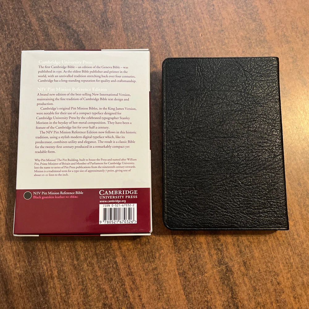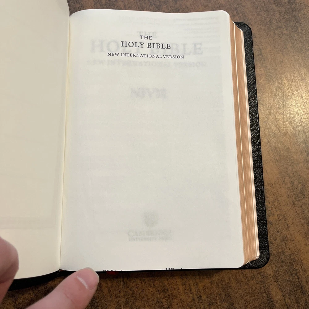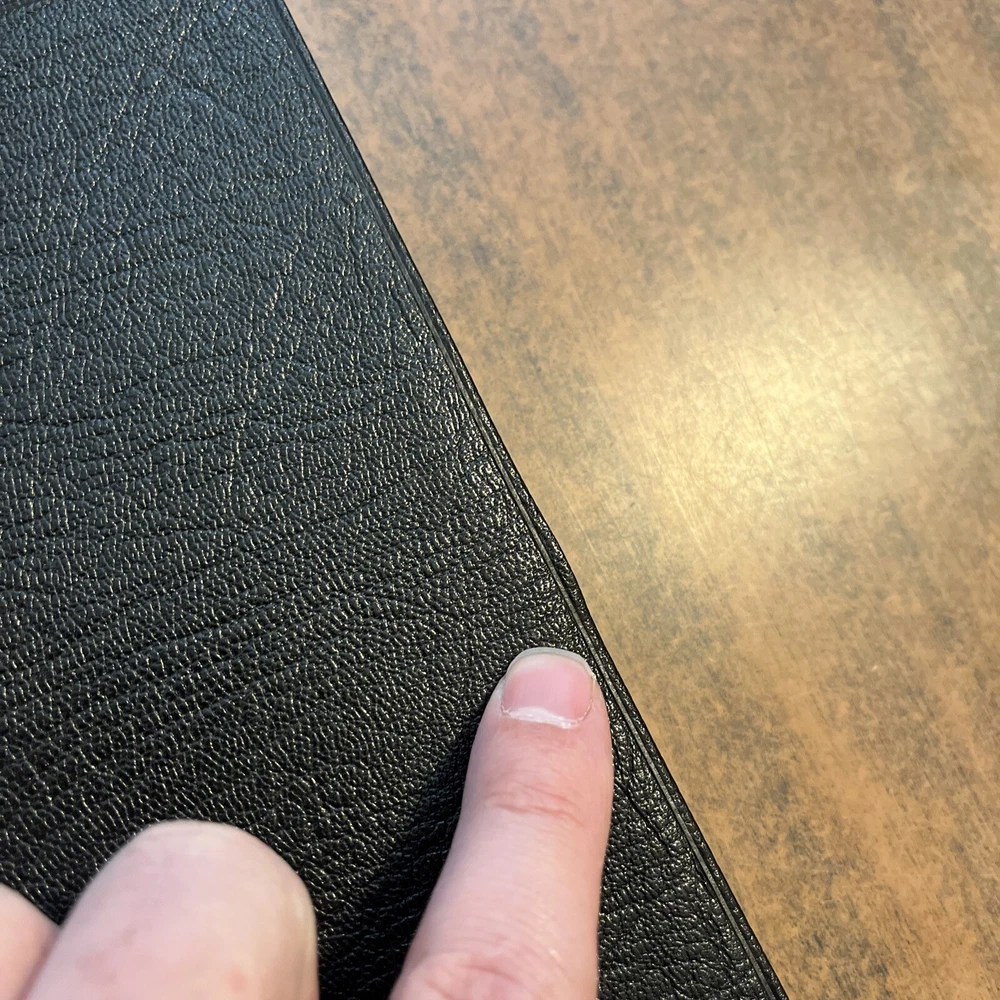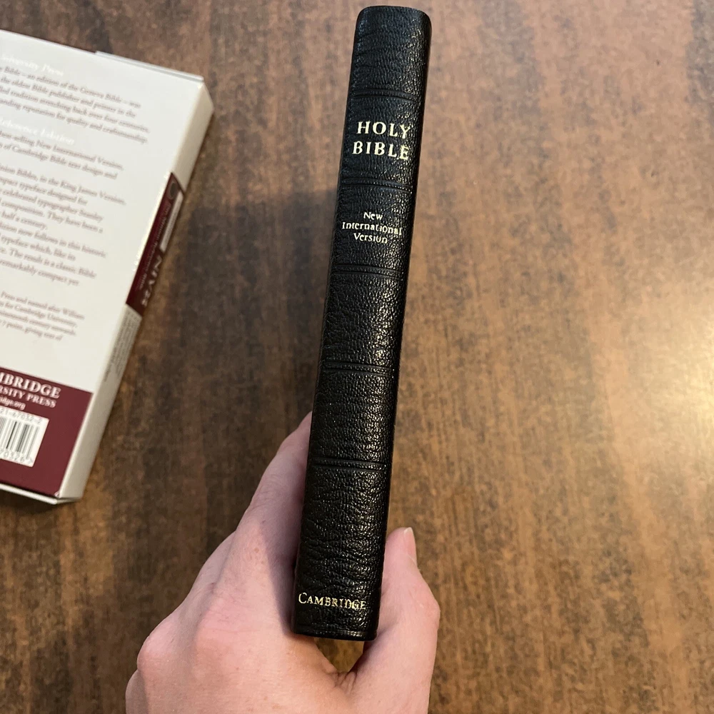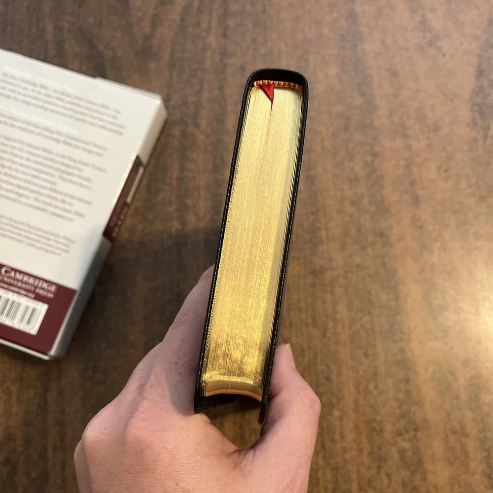 Measures appx 7.4 x 5.1 x .9 7 pt font, compact bible Appears unused. This is slightly imperfect copy. The text block is printed too high on the paper. The result is the verse reference and page numbers are much higher on the page than they should be and there is an open margin at the bottom. I flipped through it many times and it does not appear anything has been cut off due to this. There is also a spot on the outer edge of the front leather cover that is slightly firmer than the rest of the cover. Shipping will combine automatically based on weight on any items purchased at the same time, just add any items to your cart and checkout as one purchase! No returns