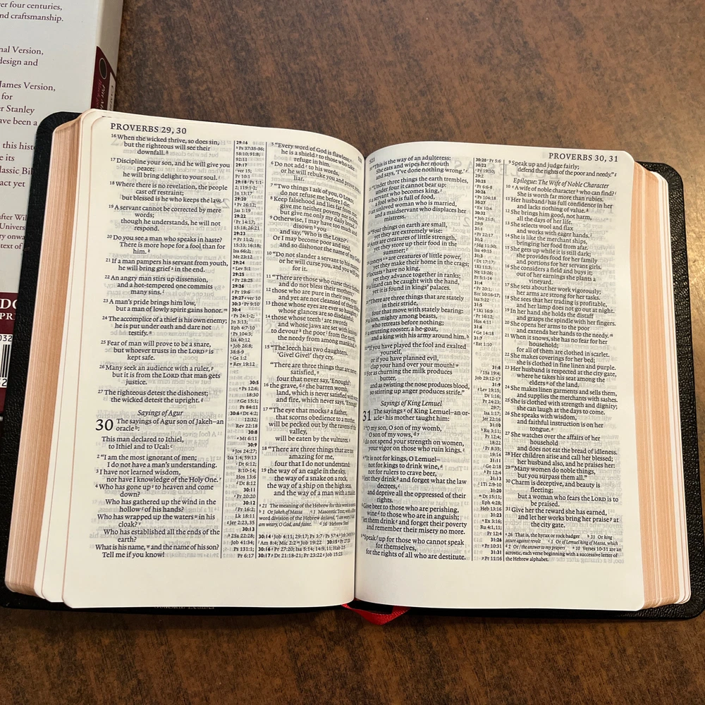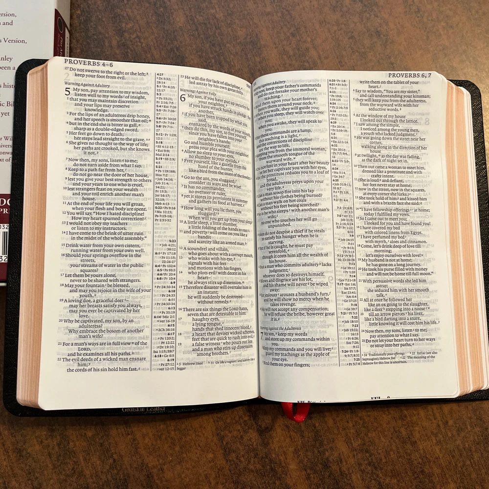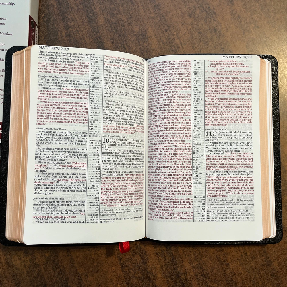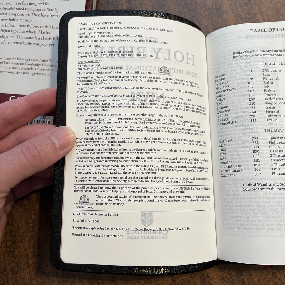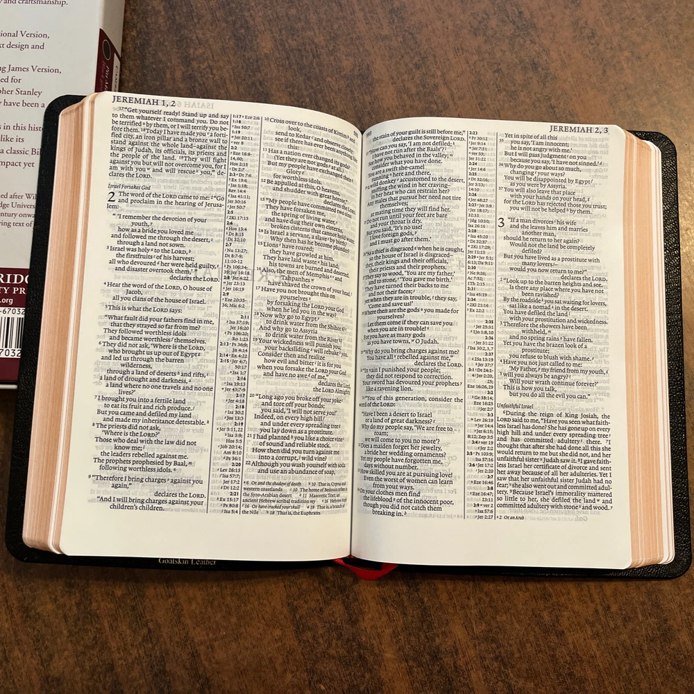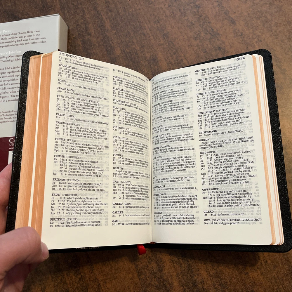 Measures appx 7.4 x 5.1 x .9 7 pt font, compact bible Appears unused. This is slightly imperfect copy. The text block is printed too high on the paper. The result is the verse reference and page numbers are much higher on the page than they should be and there is an open margin at the bottom. I flipped through it many times and it does not appear anything has been cut off due to this. There is also a spot on the outer edge of the front leather cover that is slightly firmer than the rest of the cover. Shipping will combine automatically based on weight on any items purchased at the same time, just add any items to your cart and checkout as one purchase! No returns