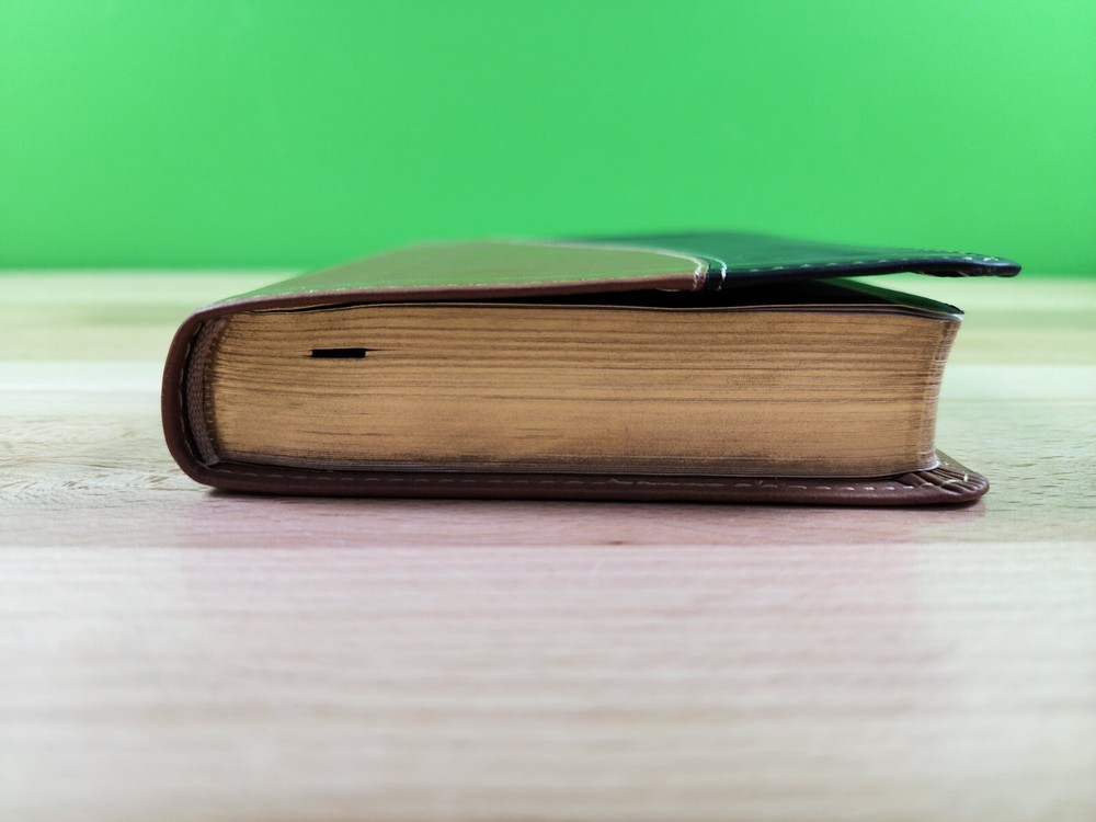 This Bible is perfect for on-the-go reading—compact yet easy to hold, with a stylish tan and black duo-tone cover. The red-letter text makes Jesus' words stand out beautifully. Despite being pre-owned, it's in great condition, and the Media Mail shipping was quick. Highly recommend for daily devotionals or travel!