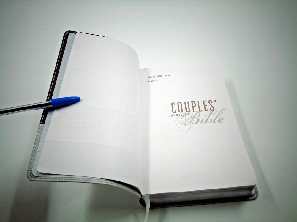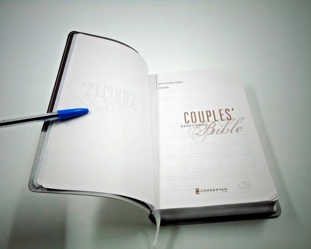 The NIV Couples' Devotional Bible is a beautifully crafted leather-bound book featuring silver gilt pages and silver edges. Published by Zondervan in 2009, this Bible is designed for couples seeking to grow closer to each other and to God. With a New International Version translation and devotional content focused on Christian love and marriage, this Bible is an ideal reference for adults looking to strengthen their relationship with their partner and with their faith. This 1600-page book measures 9 inches in height, 6 inches in length, and 1.5 inches in width, making it a meaningful and lasting gift for any couple. AN2237BK2018LRMS3SH2-4(3)