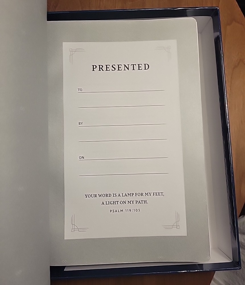 The item arrived earlier than estimated. And arrived with no visible damage. It was exactly what I was looking for. A beautiful well put together bible that is decent sized and feels nice in the hands. Well worth the price.