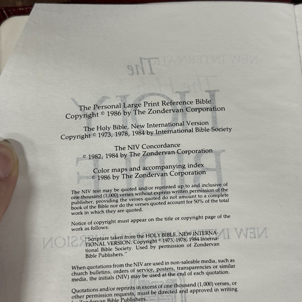 NIV Large Print Reference Bible 1986 Burgundy Imitation Leather And Extra In loved condition (see photos) Bible my utmost for his highest book Case...