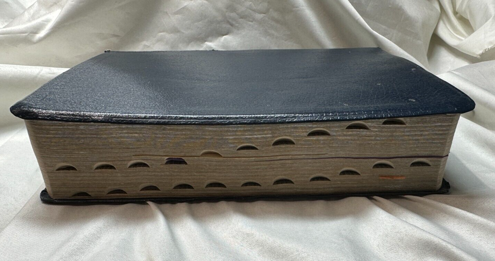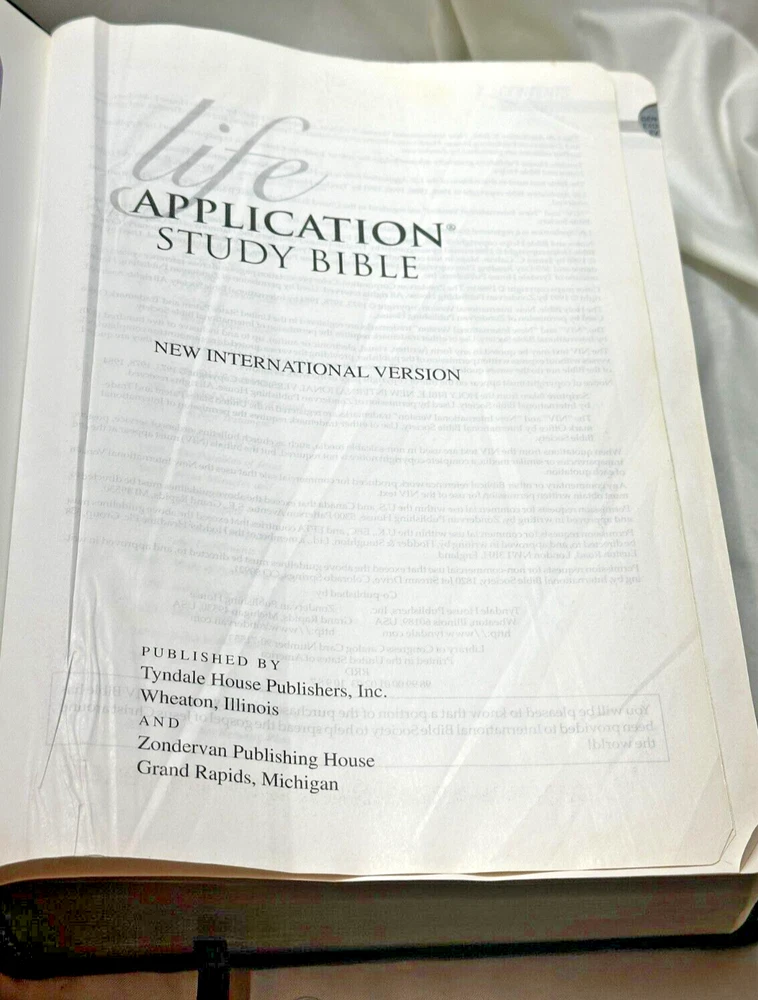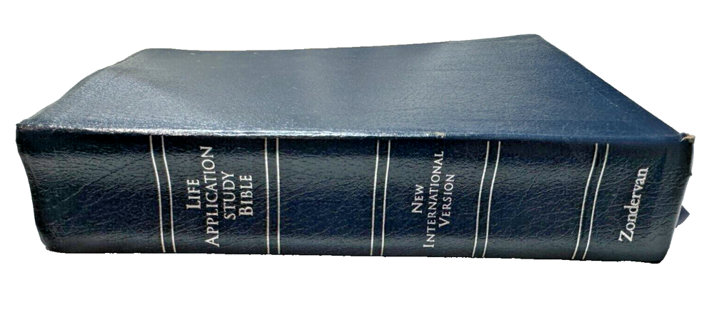 This NIV Life Application Study Bible from 1991 is a valuable addition to any collection. With its black bonded leather cover and ribbon marker, it is a durable and personalized study tool for all ages. The single column format and red letter make it easy to read and study, while the 2504 pages provide ample opportunity to dive into the Bible also there jis several color map plates in the back..It is published by Zondervan and has been illustrated by the author. The book is in English, the original language, and has a weight of 59.3 Oz. It is perfect for young adults and adults, with an educational level of all ages. This Bible is a must-have for anyone looking to deepen their understanding of religion and spirituality. This Bible does have some underling and highlighting on the pages. It is still very readable the highlights or underlining do not hinder reading. A few of the front pages have creases in them. The presentation page is dedicated the the owner and there is a written prayer on one of the front pages. Please see the pictures for best idea of condition. The newest publishing date I see is 1991. Thank you for looking.