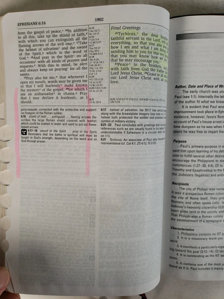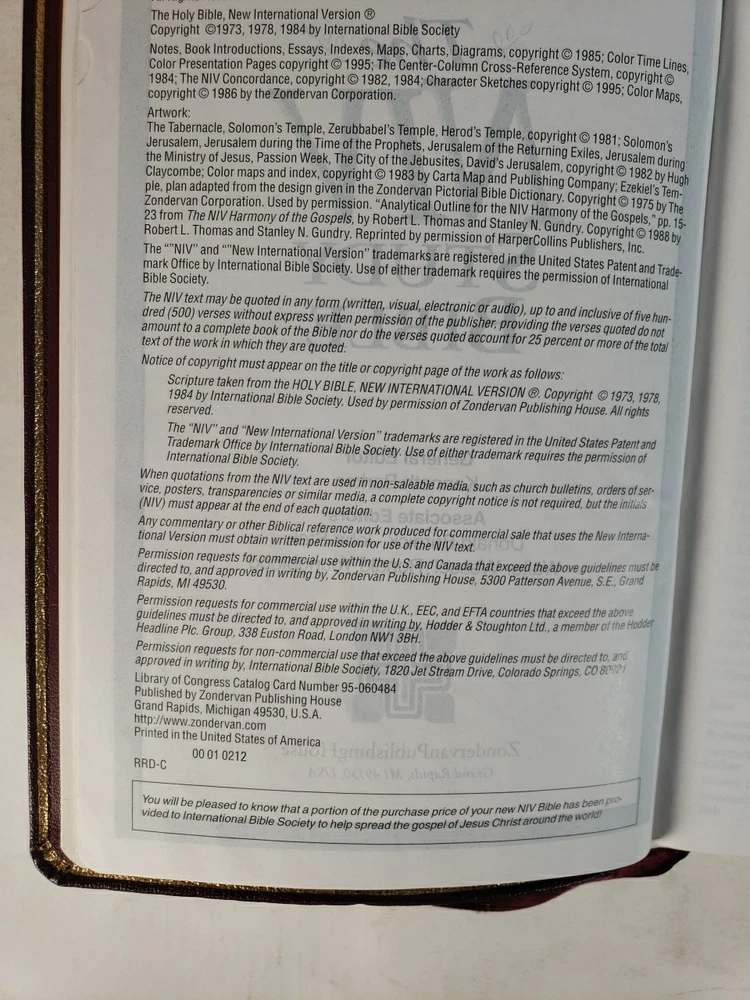 | Synopsis | Red letter Book introductions and outlines Study notes Timelines Expanded topical index Maps 2,182 pp. |