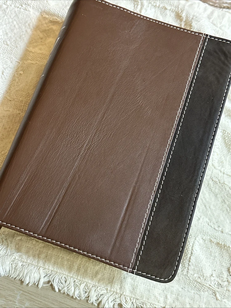 This NIV Study Bible is a fantastic find! The brown fine leather cover feels luxurious and durable, with only minor storage marks that don’t affect use. The 2008 update includes excellent study notes, making it perfect for deep scripture exploration. Despite slight creases, it’s in great condition—ideal for personal study or gifting. The photos accurately show its quality, so you know exactly what you’re getting. A solid choice for anyone wanting a reliable, well-loved Bible!