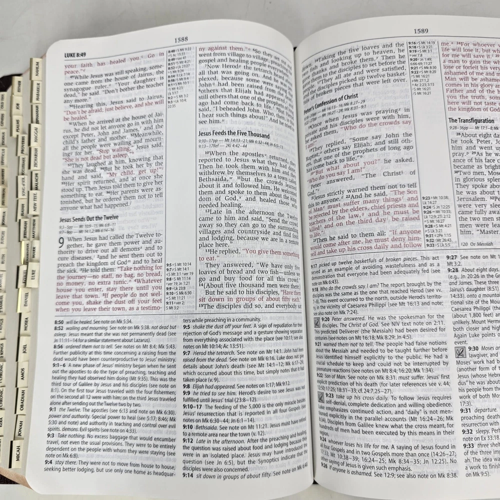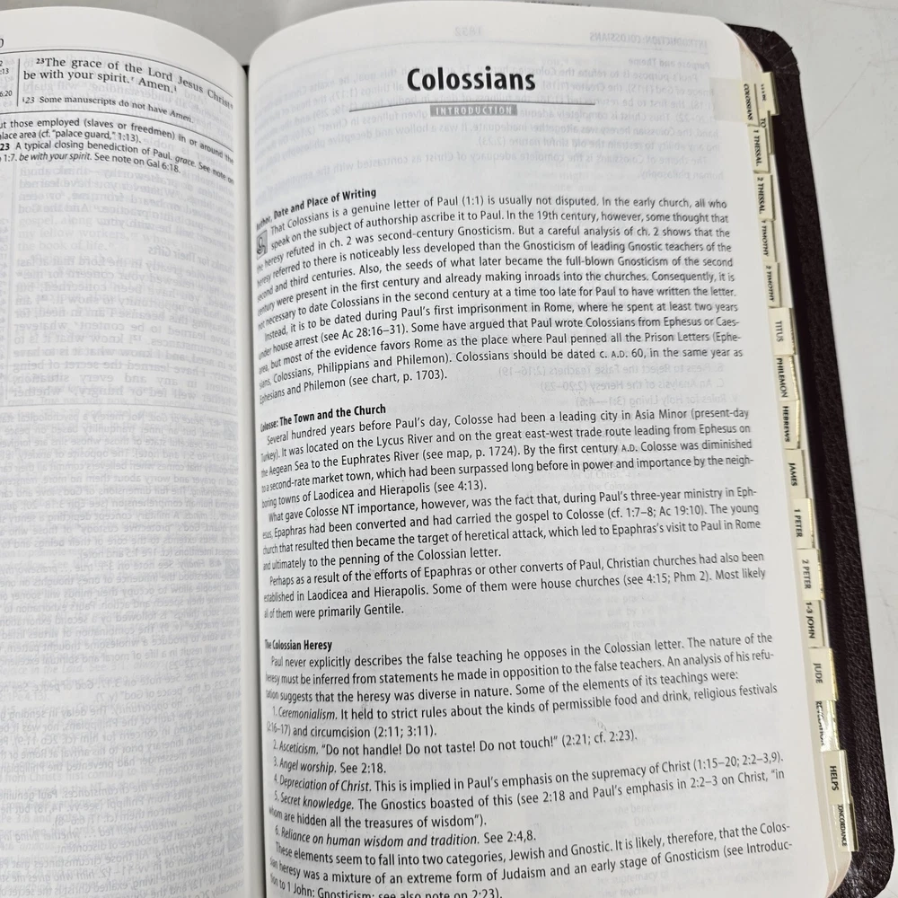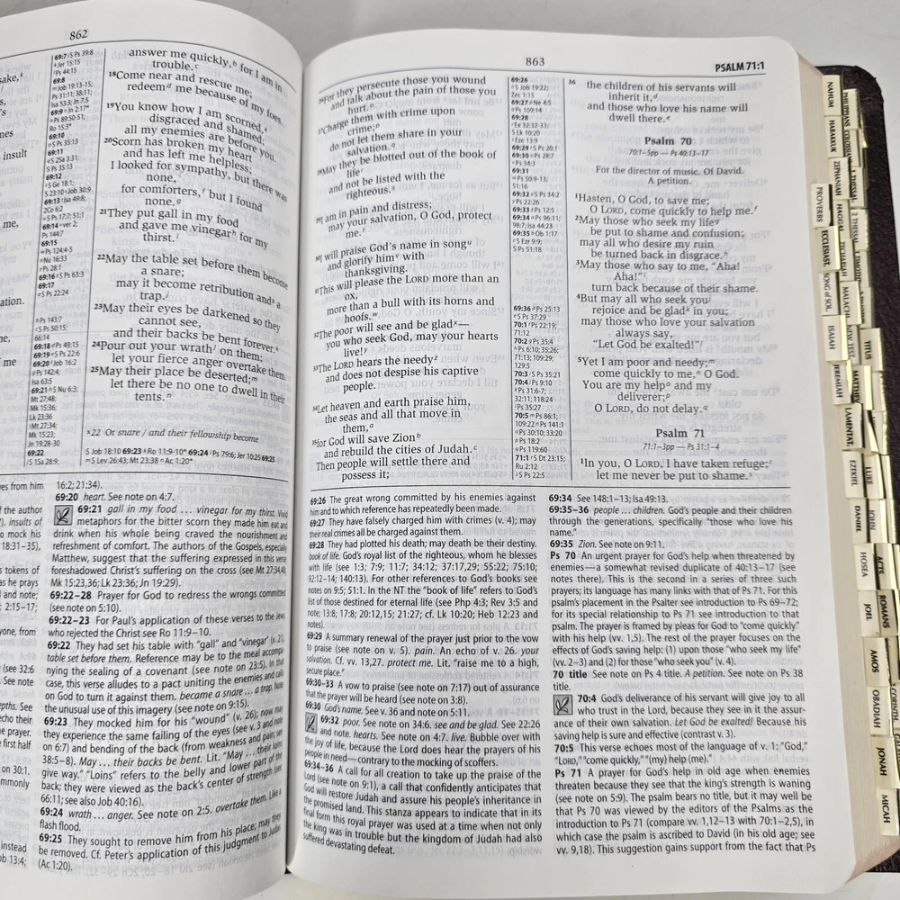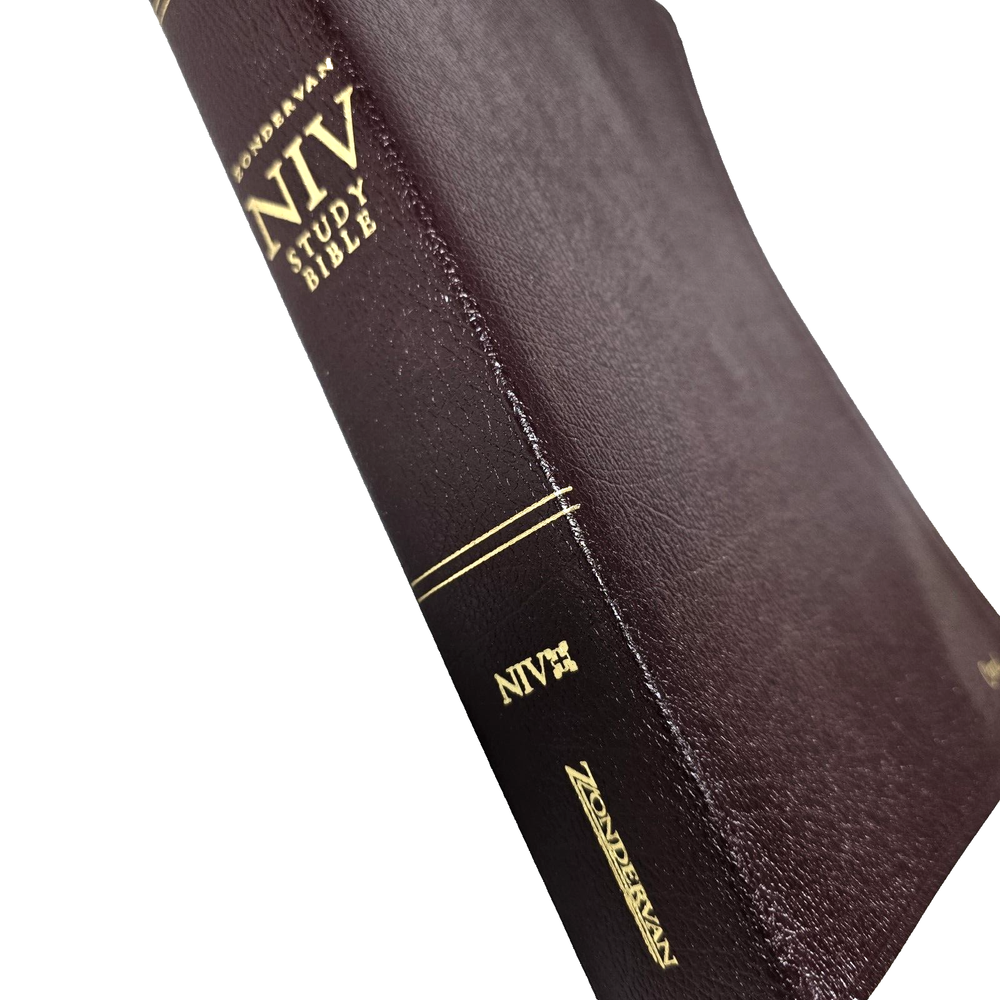 A sought-after classic NIV ( New International Version ) Study Bible from Zondervan, a Red Letter edition with Christ's Words in red, chapter and section page tabs for quick access to information you want, with gold leaf page edges and burgundy leather covers with gold leaf lettering and design accents! Includes so many elements, such as: - Extensive commentary notes on virtually every page of Scripture! - Concordance - Full color timelines - Full color maps from Biblical times and lands - Extensive Table of Contents with more than one full Index - Introductory notes to each of the 66 Bible books - Charts through out to explain critical concepts - and so much more! Note: Please click to expand the Seller's Notes above for extra information about this item's condition details. Ships from a Pet-Free and Smoke-Free Home. Shipping Note: We refuse to profit from your shipping, and we will include multiple options so you can select the mailing method that works best for you and costs you the least. We refund any excess shipping costs you pay if you order more than one item and pay for all of them in one eBay cart. Finally, we are not allowed to ship via UPS or FedEx to P.O. Boxes. Yes! We wrap extremely well and ship every single weekday (except the rare times when our listings disclose that we are away)!