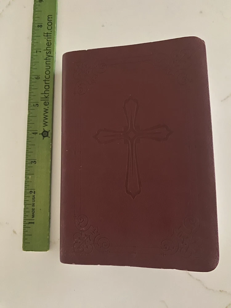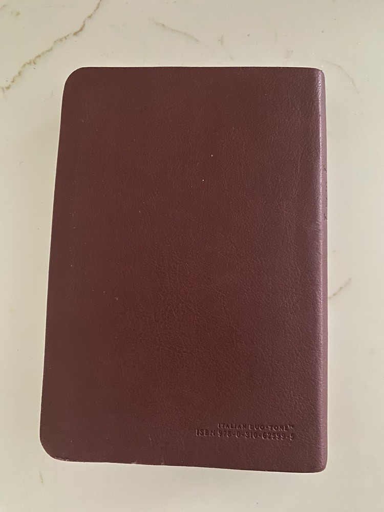 NIV Take-it-Anywhere Compact Bible 2011 Italian Duo-Tone Zondervan About 6 1/4 x 4 1/4 no tears or writings, pages intact and good condition, outside edge show slight signs of wear