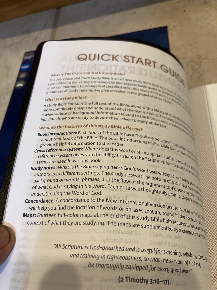 | Book Title | NIV the Grace and Truth Study Bible, Large Print, European Bonded Leather, Red Letter, Comfort Print [Black] |
