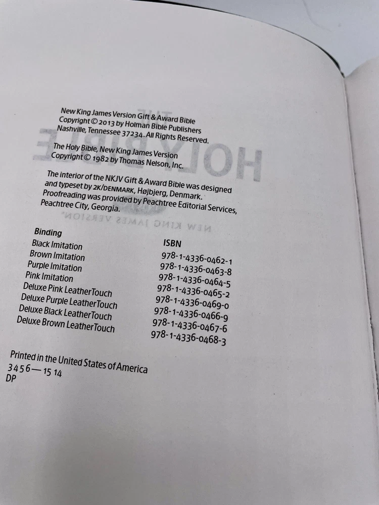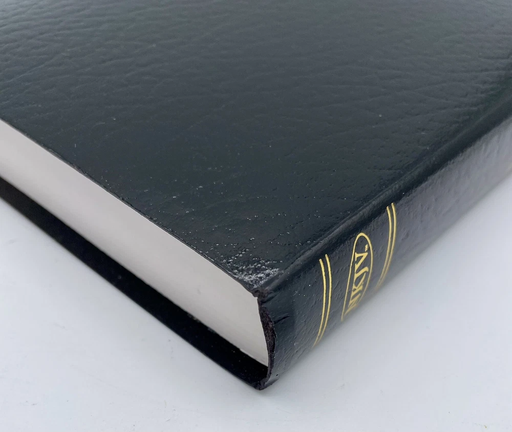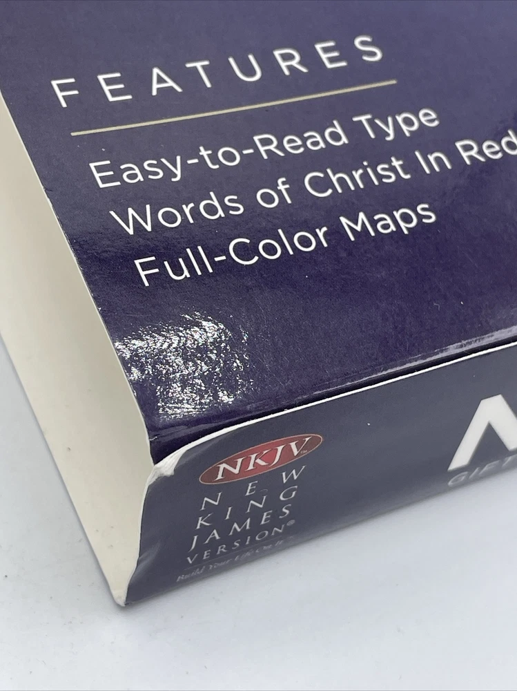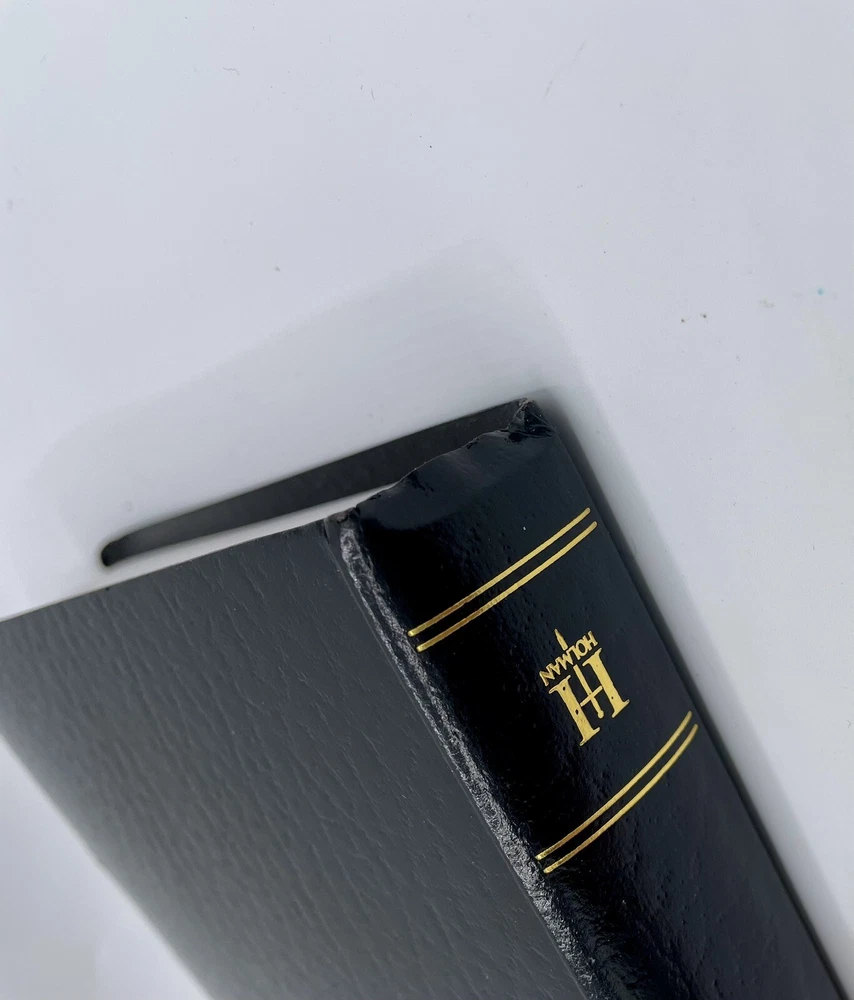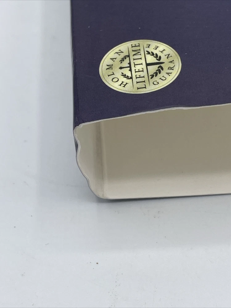 This Bible has no writing The corners and edges have bending The corners top of spine has some bending The first pages have slight separation from binding, the pages are not loose , they are still attached The slip cover has scratches and scuffs , bending of corners ( see pics ) Carefully review all pics for condition Sold as is all questions welcome