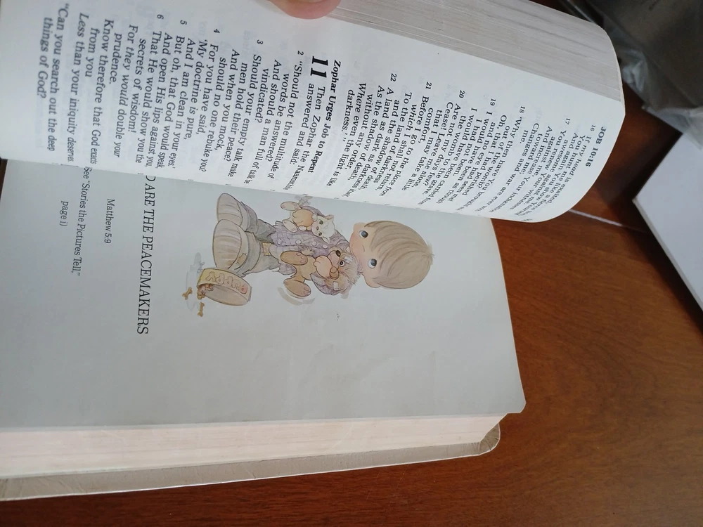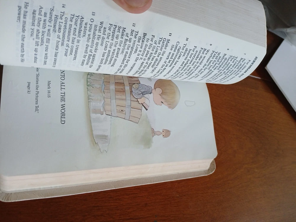 Please review the photos Threr are sone nicks a d a few pencil marks The NKJV Precious Moments Holy Bible 1990 Edition by Nelson 271V White Faux Leather is a special edition Bible published by Nelson Incorporated, Thomas. This historical nonfiction book features a faux leather-bound format with illustrations, making it suitable for a wide range of audiences including young adults, ages 4-12, and adults. Written in English and intended for spirituality and religious purposes, this Bible is a valuable addition to any collection, especially for those seeking a beautifully crafted and illustrated edition of the Word of God. Free US ground shipping You may buy priority mail I ship weekdays, if your payment is in by noon est your package will mail the same day (unless the fish are bittin)