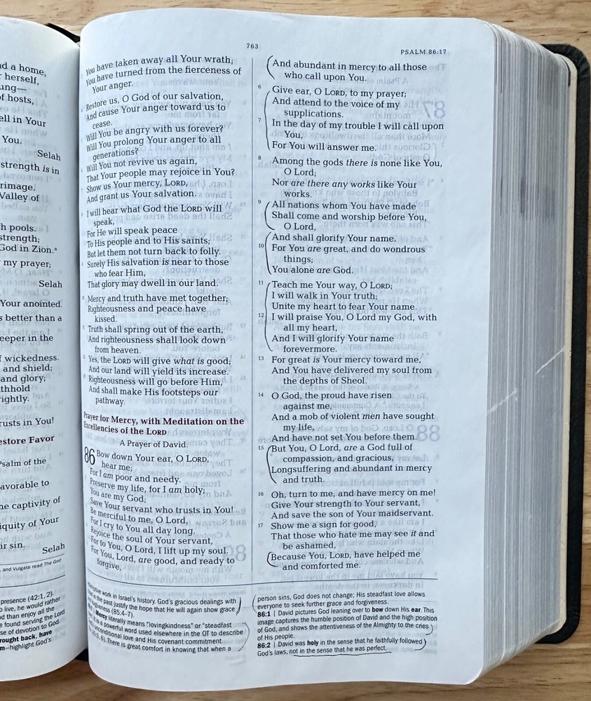 This NKJV The David Jeremiah Study Bible Black Leatherluxe Full Size Print Red Letter is a valuable addition to your collection. With its inspiring and religious content, this Study Bible is perfect for those seeking personal growth and success. It measures 10 inches in length, 7.5 inches in width, and 2.1 inches in height. Please see pictures provided. The silver gilding on the Bible has a scuff.