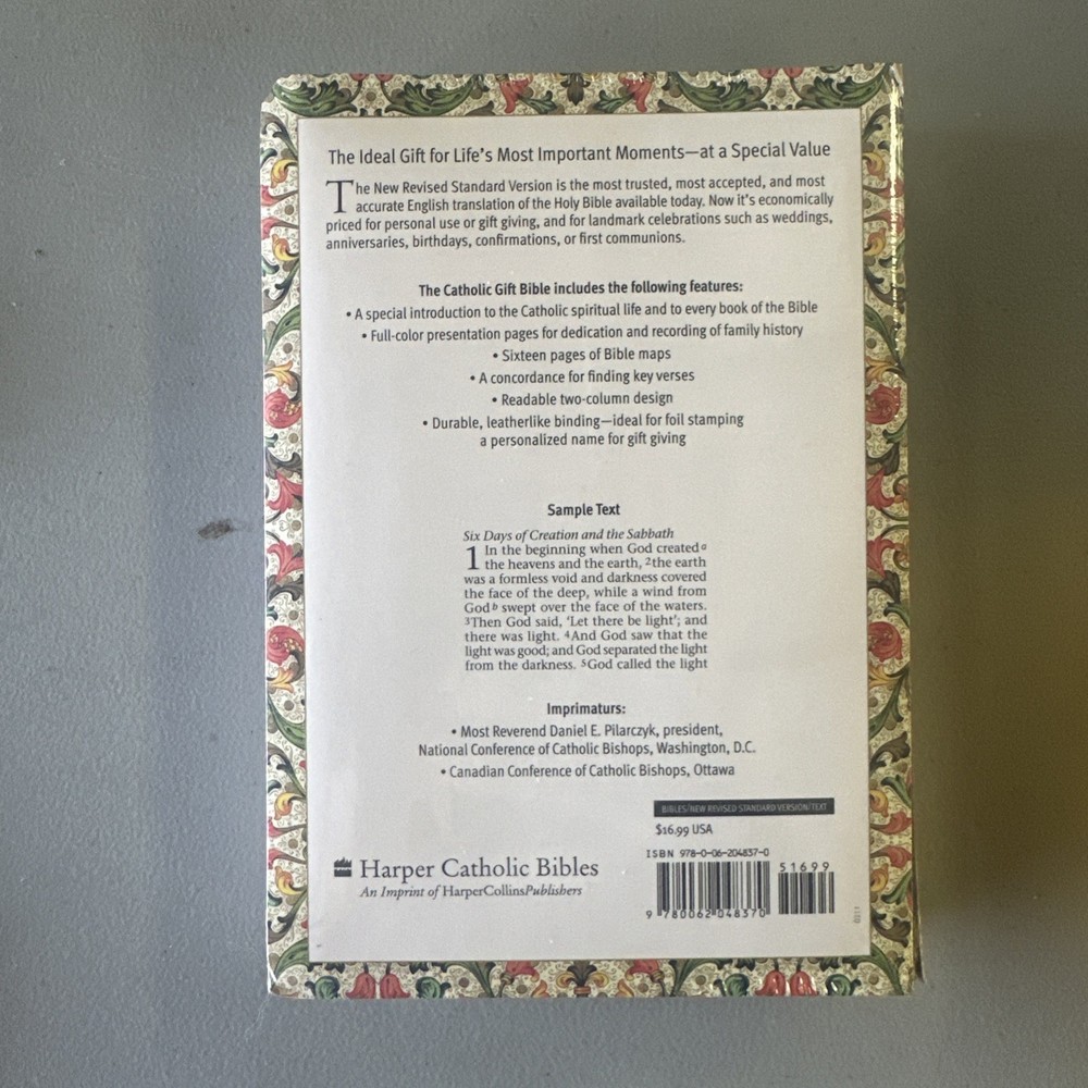 This NRSV, The Catholic Gift Bible is the perfect gift for any young adult or adult who is interested in Catholicism and spirituality. The imitation leather, black cover gives it a sophisticated look that will appeal to anyone. It is a trade paperback with 8.5 x 6 inches dimensions, making it easy to carry around and read on the go. The Bible is a revised edition published by HarperCollins in English language. It contains nonfiction narratives that will inspire and challenge the reader. The book is sealed, making it a great gift for anyone who loves to read and learn about Catholicism. Get this Bible as a textbook for a more meaningful experience.