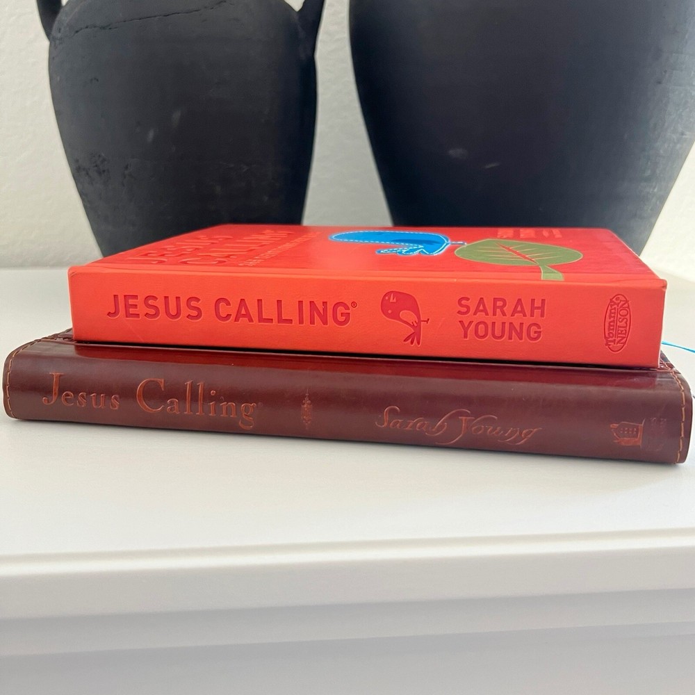 NWT Brand New + Unused Set of 2 Books Jesus Calling Daily Devotionals by Sarah Young - 1 leather bound book for adults - 1 hardcover book for children