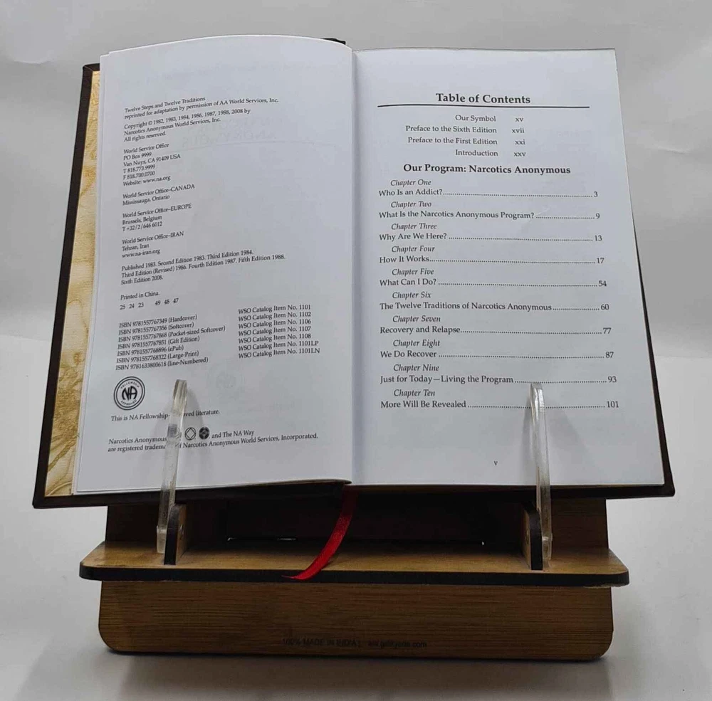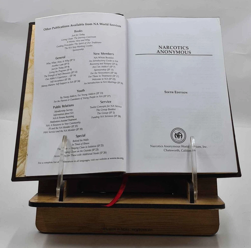 GYAN BOOKS INTRODUCING A REMARKABLE LEATHER-BOUND EDITION, METICULOUSLY CRAFTED BY THE ESTEEMED INSTITUTION " RARE BIBLIO". This title holds the distinction of being a Bestseller, highly praised by readers across the GLOBE. We are thrilled to present this literary gem exclusively to our elite readers, meticulously encased in our one-of-a-kind Premium Leather Binding . Following your order, we purchase the book from the original publisher/distributor and embark on the process of rebinding to elevate this book to a Luxurious Reading Style. A UNIQUE LEATHER-BOUND BOOK FOR ELITE READERS/COLLECTORS OF OLD RARE AND BESTSELLING BOOKS. For the Binding, we use GENUINE LEATHER , graced with opulent GOLDEN LEAF DETAILING on the SPINE , FRONT COVER , AND BACK COVER , ADDED BY EDGE GILDING . ABOUT US ★ We deal into reprinting of the master pieces crafted by authors around the world. ★ We are proud to say that we have a collection of over 25 million books and our collection includes books that are as old as 200 years and hence are considered as RARE BOOKS. ★ We are pioneer in this field having experience of 40 years. ★ We also undertake printing and Leather Binding jobs of other books. ★ Thesis printing and Leather Binding is one of our important Service ★ Many publishers and author approach us for their books to bind in our Unique leather binding format for their special customers. ★ Our craftsmen are active in this job since generations. ★ Restoration of old books is our expertise ★ We are known by our Customization options. ★ We have many leather color options in our bucket. ★ The whole process is done manually so that it gives you the same feeling of old book. OFFERS & SPECIALIZATION: ★ SPECIAL DISCOUNT FOR BULK ORDERS, PLEASE CONTACT US. ★ CHOOSE ANY LEATHER COLOR OF YOUR CHOICE WITHOUT ANY EXTRA CHARGES, JUST CLICK ON IMAGES FOR OPTIONAL COLORS AND INFORM US YOUR CHOICE THROUGH MAIL WITH COLOR CODE. ★ WE OFFER A DIVERSE RANGE OF LEATHER COLORS, INCLUDING RED , GREEN , BLUE , BLACK, MAGENTA , YELLOW , TAN . WE ALSO OFFER MULTI-COLOR LABELS WITH THESE BEAUTIFUL BOOKS ON SPECIAL REQUEST. ★ AN ORIGINAL LEATHER IS BEING USED FOR BINDING THIS BOOK WITH GOLDEN LEAF PRINTING AND DESIGNING ON SPINE, FRONT AND BACK OF THE BOOK WITH EDGE GILDING . Points to note before booking order: ★ In case of multi volume sets, please note that the above listing is for a single volume only. (To order multiple volumes, please contact us separately). ★ We urge you to appreciate that our Leather-Bound Books are Genuine works of art and are Handcrafted by our Professional Craftsmen. Thus, requiring time and care to reach the pinnacle of excellence. ★ We Prepare the Book after receiving the Order. ★ We usually take 30 business days as handling time to dispatch shipment. ★ We request you to understand that these leather-bound books are work of art and hence require time to go through different process to be the master pieces that they are. ★ We usually take 30 business days as handling time to dispatch shipment. We consider special request for a special occasion. ★ Craftsman based in India, prepared this book and shipped from different stock locations around the Globe. Product Details: - ★ Complete Title: Narcotics Anonymous Basic Text 6th Edition Hardcover by Anonymous [PREMIUM LEATHER BOUND] ★ Author: Anonymous ★ Language: English ★ No. Of Pages: 425 ★ Year: 2009 ★ We provide ?Extra customization*? on request with additional charges. ★ We also undertake printing and Leather Binding of all the books. ★ Product Disclaimer: Please be aware that because leather is a natural material, slight discoloration or change in texture may be visible. About the Book: - Written by addicts, for addicts, and about addicts, this is the hardcover edition of the book that sets forth the spiritual principles of Narcotics Anonymous that hundreds of thousands of addicts have used in recovery. Just as with alcoholism, there is no "cure" for narcotic addiction, but recovery is possible through a program adapted from the Twelve Steps and Twelve Traditions of Alcoholics Anonymous. Intended as a complete textbook for every addict seeking recovery, Narcotics Anonymous describes the NA program and how it works. It includes the NA Twelve Steps and Twelve Traditions, as well as many personal stories of people who have found freedom from addiction through Narcotics Anonymous.