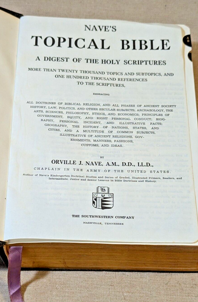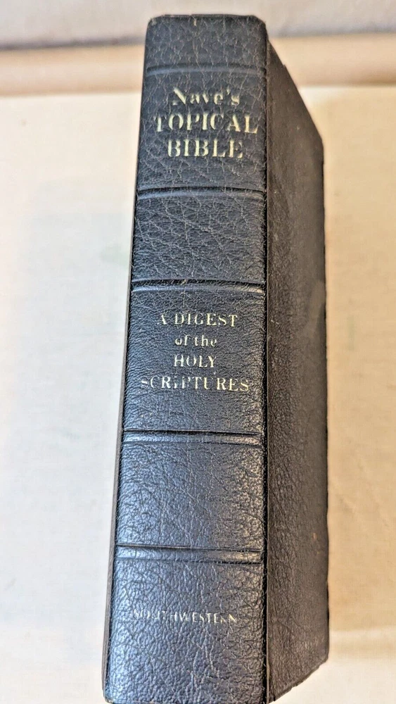 Nave’s Topical Bible A Digest of the Holy Scriptures Indexed Faux Leather 1962, There are creases on the cover but no marks on the pages.
