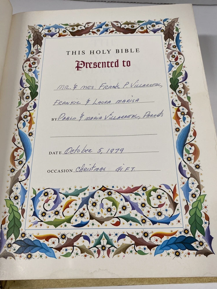 I will combine shipping on multiple media orders. This includes, books, records, tapes, cds, dvds, vhs, reel to reel, 8tracks. New American HOLY BIBLE Catholic Heirloom Edition Pope John Paul II 1970’s. Condition is "Acceptable “. Book has some wear on outer cover, water stains on some pages and inside back cover. Inscription. PLEASE SEE PHOTOS!! Thank you for looking. Please check out the other items in my store.
