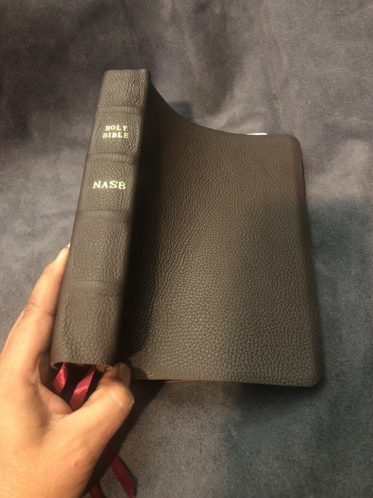 (This Bible is available in many colors! Custom stamping is also available Please send me a message if you are interested. Also if you need a re-bind on your Bible/book I can do that as well. I try to be very affordable.) .Shipped with USPS Media Mail. Comes with genuine cowhide leather, the thickness of leather is 4 oz. the leather is very soft and durable, ribs on spine for elegant look, 2 ribbons, this Bible has no markings or highlights whatsoever it has never been used plz examine pics carefully before purchasing and feel free to ask any questions, I do my best to respond quickly and also be sure to check out the other bibles that I have for sale, and if you want a certain Bible rebound let me know I can do that too, God bless.