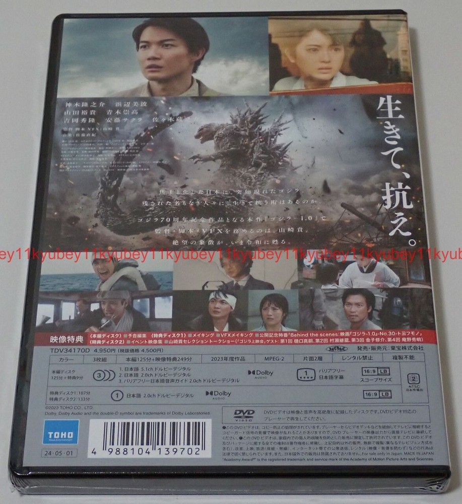 Description Condition : Brand New / Factory Sealed Release Date : May.1.2024 Region Code : 2 / NTSC Language : Japanese Subtitles : None Text : Japanese Disc : 3 (DVD) Time : This item is First Limited Edition. [First Limited Edition Benefits] ・ DVD x3 Japan after the war. From nothing to negative. <Story> Live and resist. Godzilla suddenly appears in Japan, which has become a scorched earth. Is there a way for the nameless people left behind to survive and fight back? In this work "Godzilla-1.0" which is a work commemorating Godzilla's 70th anniversary, Takashi Yamazaki is the director, scriptwriter, and VFX. A symbol of despair is now revived in Reiwa. [Main story DISC DVD] Main story 125 minutes / 2 layers on one side / 16:9LB Scope size Audio: (1) Japanese 5.1ch Dolby Digital (2) Japanese 2.0ch Dolby Digital (3) Barrier-free Japanese audio guide 2.0ch Dolby Digital Subtitles: Barrier-free Japanese subtitles [Bonus DISC DVD①・②] Recording length: undetermined / 2 layers on one side / 16:9LB Audio: Japanese 2.0ch Dolby Digital <Contents included> ■Making ■VFX making ■Release commemoration special program Behind the scenes -No.30-Tounfumono'' ■Event video collection Monday, September 4, 2023: Completion report press conference Wednesday, October 18, 2023: World Premiere Red Carpet Event Monday, October 23, 2023: Tokyo International Film Festival Opening Red Carpet Wednesday, November 1, 2023: Tokyo International Film Festival Closing Screening Stage Greetings November 3, 2023 (Friday/Holiday): Opening day stage greeting Wednesday, November 8, 2023 - Friday, November 10, 2023: North American Premiere Wednesday, November 29, 2023: Sapporo event ◇Takashi Yamazaki Selection Talk Show Friday, September 15, 2023: “Takashi Yamazaki Selection Godzilla Screening” 1st (Guest: Shinji Higuchi) Friday, September 29, 2023: “Takashi Yamazaki Selection Godzilla Screening” 2nd (Guest: Tsuguzo Murase) Friday, October 13, 2023: “Takashi Yamazaki Selection Godzilla Screening” 3rd (Guest: Shusuke Kaneko) Friday, October 27, 2023: “Takashi Yamazaki Selection Godzilla Screening” 4th (Guest: Hideaki Anno) <Cast> Ryunosuke Kamiki, Minami Hamabe, Yuki Yamada, Munetaka Aoki, Hidetaka Yoshioka, Sakura Ando, Kuranosuke Sasaki <Staff> Director Script VFX: Takashi Yamazaki Music: Naoki Sato Shipping SHIPPED EXPRESS (EMS) from JAPAN Cost : FREE SHIPPING Shipped : World Wide Courier : Japan Post EMS Online Tracking Number : PROVIDED Insurance : PROVIDED Estimated Delivery : 1 week to 2 weeks We will ship this product within 5 business days after the payment is received. Payment Please pay within 5 days after auction is finished. About Us Our Products are 100% Authentic. I promise to pack up the product very carefully. Although slight costs start for that purpose, I do some shopping to you in comfort, and want you to enjoy the product. If you have any question,please contact me. Happy Bidding!!