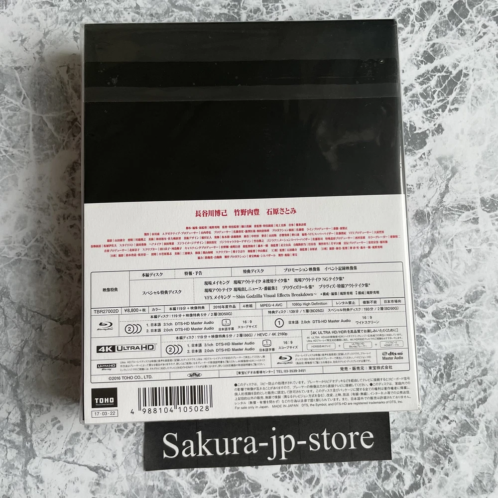 New Shin Godzilla Special Edition 4K Ultra HD 4 Blu-ray TBR-27002D Japan New F/S Description Condition: New New Shin Godzilla Special Edition 4K Ultra HD 4 Blu-ray TBR-27002D Japan New F/S Box-office revenue exceeds 8 billion yen! The total audience for the series has exceeded 100 million! The confrontation with the giant unknown creature is depicted with overwhelming reality and unpredictable high-speed development! A new innovation in Japanese cinema that should be seen now! A new Japanese movie that you should see now! Main DISC 4K Ultra HD Blu-ray 119 min / Dual-layer 66G / CinemaScope size Audio: (1)Japanese 3.1ch dts-HD Master Audio (2)Japanese 2.0ch dts-HD Master Audio Subtitle:(1) Japanese Main DISC Blu-ray 119min / Dual-layer BD50G / CinemaScope Audio: (1) Japanese 3.1ch dts-HD Master Audio (2 ) Japanese 2.0ch dts-HD Master Audio Subtitle: (1) Japanese Special DISC Blu-ray BD25G/minutes undecided Promotional videos Campaign footage Special bonus DISC Blu-ray BD25G/unspecified number of minutes Making of the film ・Outtakes Pre-visualization reel ・Pre-visualization outtakes CG making of the film Special 3-disc set + 1 4K Ultra HD Blu-ray included Payment Please pay within 5 days after the auction closed. International Buyers; Please Note: Import duties, taxes, and charges are not included in the item price or shipping cost. These charges are the buyer's responsibility. Please check with your country's customs office to determine what these additional costs will be prior to bidding or buying. We never accept undervalue offers. Shipping About other area, please ask me. 【Handling time】 We cannot ship on Saturdays, Sundays and Japan holidays. In the case of reserved products, the shipping procedure will be after the sale. Regardless of the delivery method, there may be a delay in delivery time than expected during customs waiting periods, postal delays, and busy periods such as the holiday season. Returns Returns are accepted ONLY if the item was not the item described. International Buyers - Please Note: * Import duties, taxes and charges are not included in the item price or shipping charges. These charges are the buyer's responsibility. * Please check with your country's customs office to determine what these additional costs will be prior to bidding/buying. * These charges are normally collected by the delivering freight (shipping) company or when you pick the item up - do not confuse them for additional shipping charges. * We do not mark merchandise values below value or mark items as "gifts" - US and International government regulations prohibit such behavior. About us Thank you for visiting my page. We am very passionate about quality Japanese products. We want to deliver good Japanese products to people all over the world through ebay. We am always trying to give you the peace of mind by offering a courteous and fast service. Please feel free to contact us if you have any questions. We will surely help you.