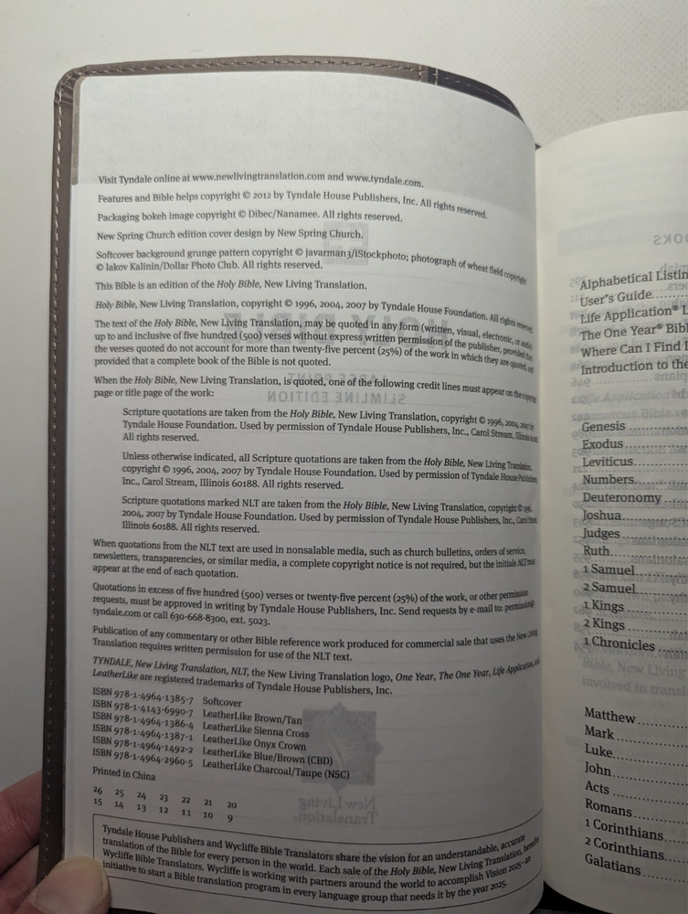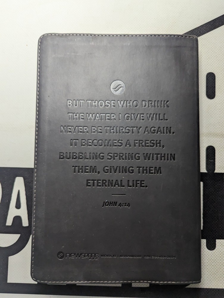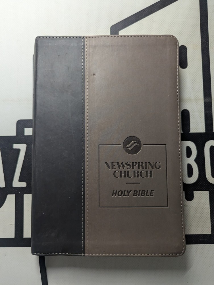 Newspring Church Slimline Bible by Tyndale House Publishers Staff 2016 Imitation Book is in good condition. The covers and spine have minor wear, have light (if any) creases/scratches/scuffs/marks/dirty, and some of the corners/edges are peeling up. The inside looks good. I'll be happy to combine shipping on items as long as they are in the same order. Please let me know if you have any questions, and have a CRAZY day!