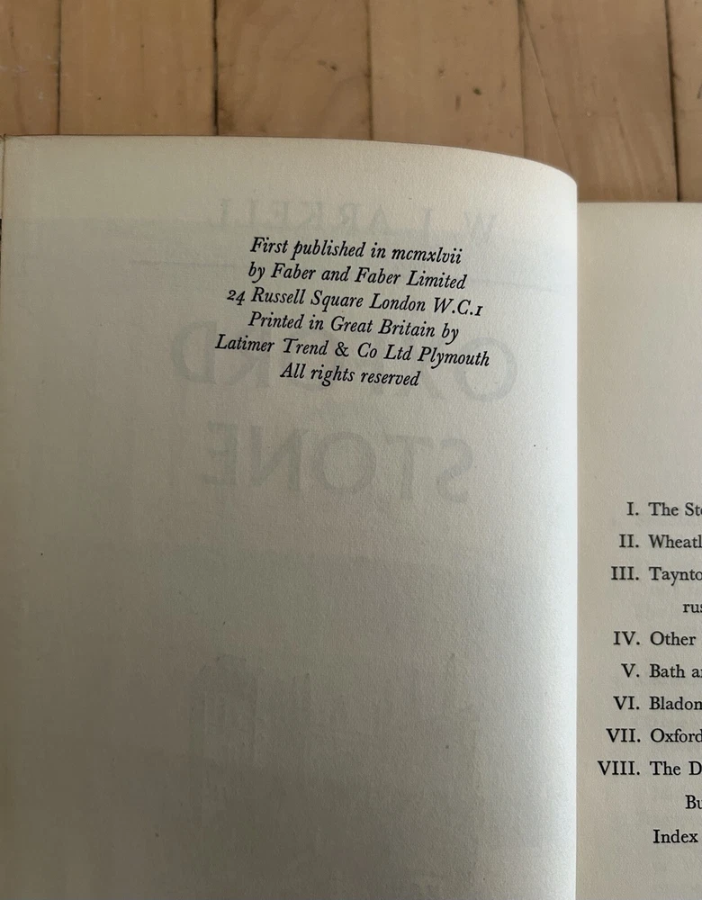 OXFORD STONE W J Arkell 1st Edition VG+ 3/4 Leather Bound DESCRIPTION Oxford Stone, W J Arkell. Faber & Faber: London, 1947. CONDITION Book is VG+. Book is square and tight and pages are clean. Three-quarter bound in leather with bright gilt on spine. Gilt top edge. No owners mark, not ex-library. PLEASE NOTE: Shipping is USPS Media Mail. Canadian shipping is Canada Post Expedited. International is USPS International. Neither the item price nor the shipping cost includes taxes or customs duties. If these are levied, they are the reponsiblity of the buyer. I am more than happy to combine for shipping. Your satisfaction is my goal. Please contact me if you have any questions about this item. Good Luck and Happy Bidding! _gsrx_vers_1653 (GS 9.7.5 (1653))