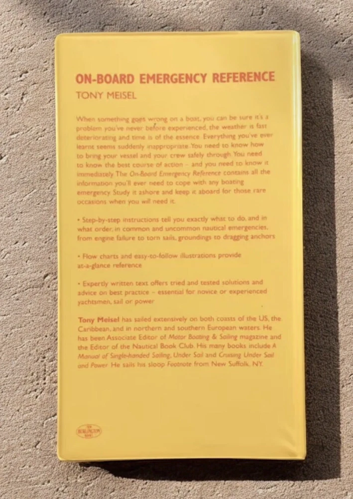 WILL COMBINE SHIPPING COSTS FOR MULTIPLE ITEMS This On Board Emergency Reference guide is a must-have for any boating enthusiast. Filled with vital information on resolving any boat crisis, this hardcover book authored by Tony Meindel covers topics on boating/sailing, and has a total of 224 pages. It is published by New Burlington Books and weighs 1.4 lbs. The book is written in English and is ideal for those who are interested in gaining more knowledge on boating safety and emergency procedures. With this guide, you can be sure to handle any emergency situation that may arise while on board your boat.