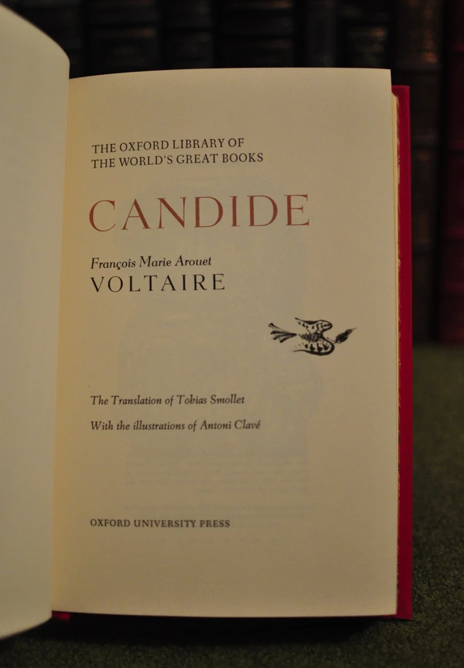 Candide by Voltaire. Translated: Tobias Smollet Hardcover: 154 pages Language: English Publisher: The Franklin Library Oxford University Press Beautiful Unread copy....