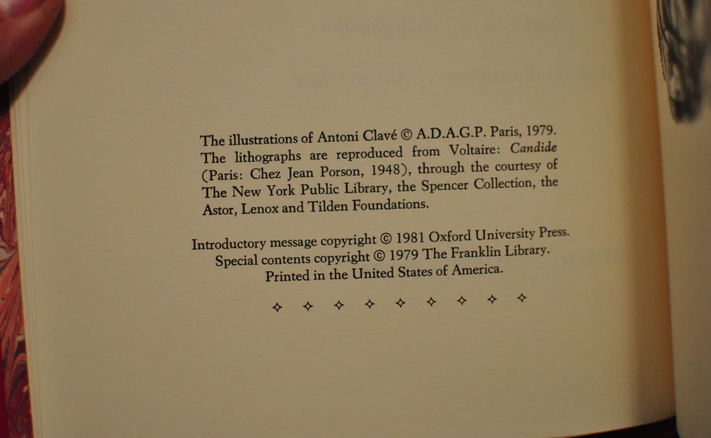 Candide by Voltaire. Translated: Tobias Smollet Hardcover: 154 pages Language: English Publisher: The Franklin Library Oxford University Press Beautiful Unread copy.