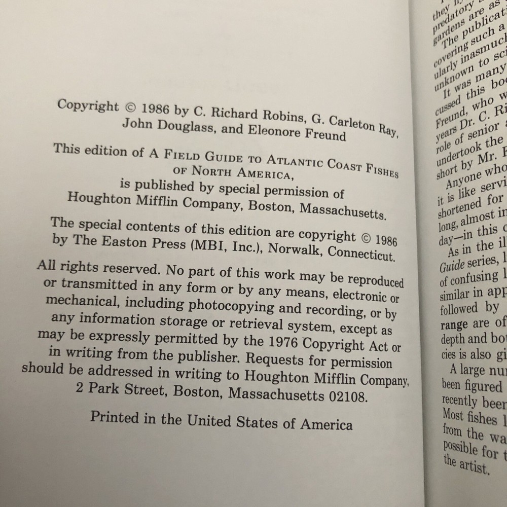 PACIFIC COAST FISHES, ROGER TORY PETERSON FIELD GUIDE, LEATHER EASTON PRESS. New unread copy