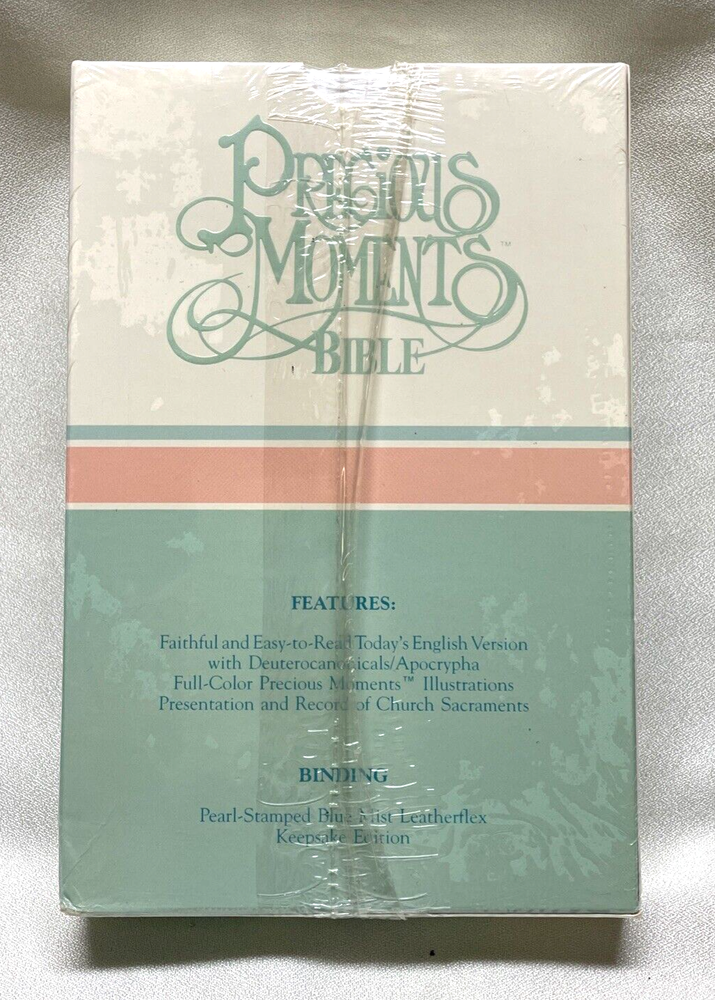 PRECIOUS MOMENTS KEEPSAKE EDITION CATHOLIC BIBLE LEATHERFLEX PEARL STAMPED BLUE MIST STAINED PAGE EDGES 1271B - STILL IN PLASTIC WRAP. SHIPS USPS MEDIA MAIL...